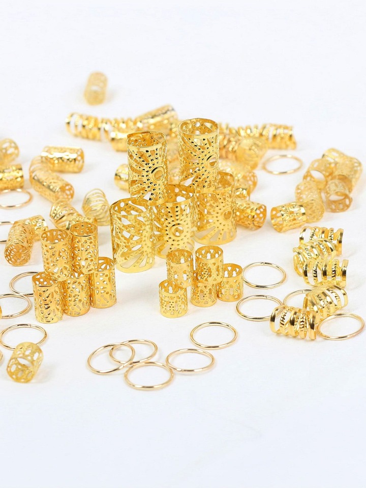 85 قطعة من الحلقات المضفرة المذهبة للشعر، مزيج من العناصر، لأسلوب الحفلات والهيب هوب والبنك والشارع، اكسسوارات شعر، مشابك شعر بوهيمية