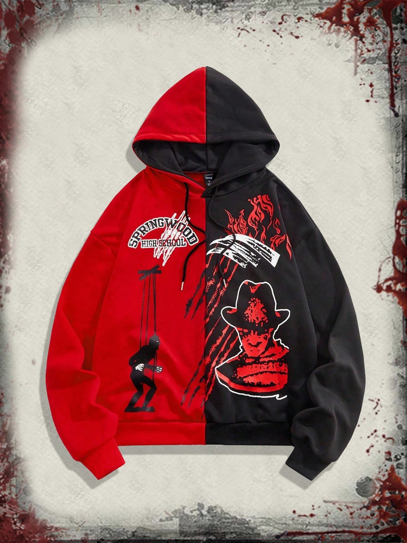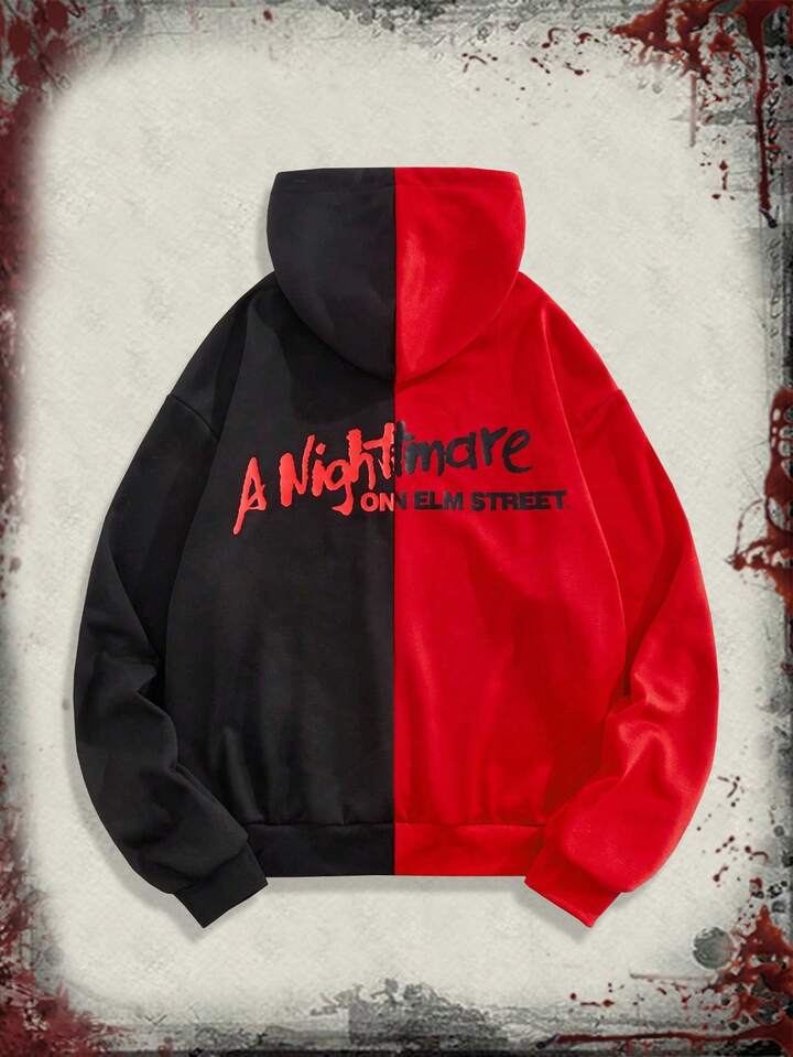A Nightmare on Elm Street X ROMWE هودي بطبعات رسوم كرتونية للرجال، خريف