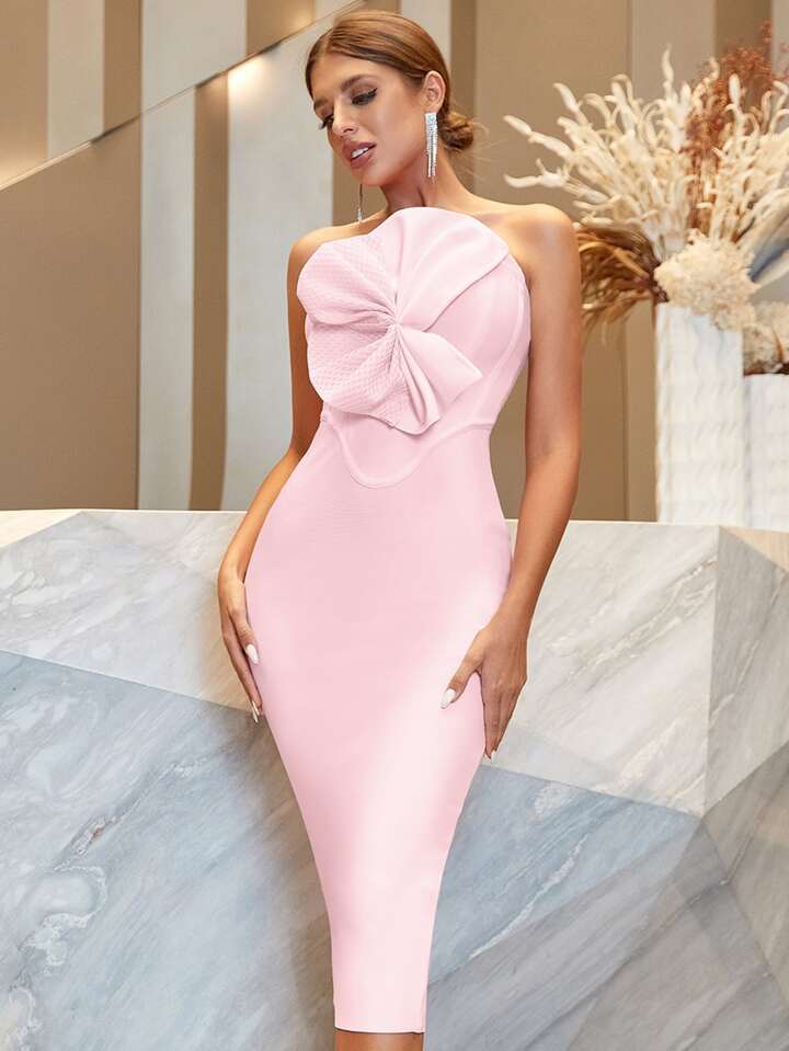 ADYCE فستان كوكتيل ضيق الأنبوب كشكش كبير بحافة شق