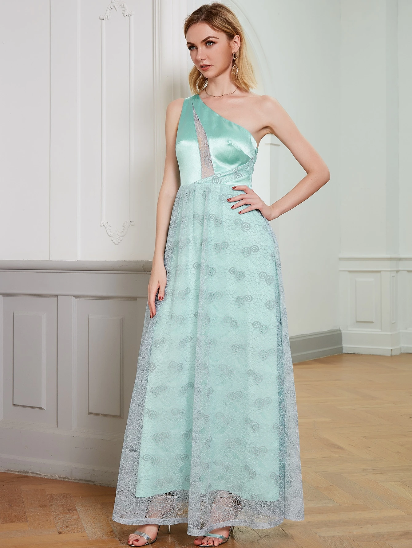 ANGEL FASHIONS فستان حفلة دانتيل ساتان وبكتف واحد ازياء الملاك