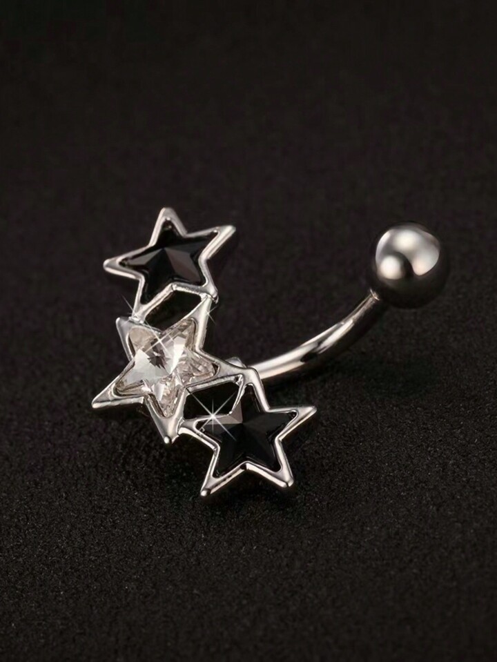 Academia حلقة سرة بطن موضة فولاذ غير قابل للصدأ نجمة بديكور حجر الراين للنساء الزخرفة اليومية قطعة واحدة
