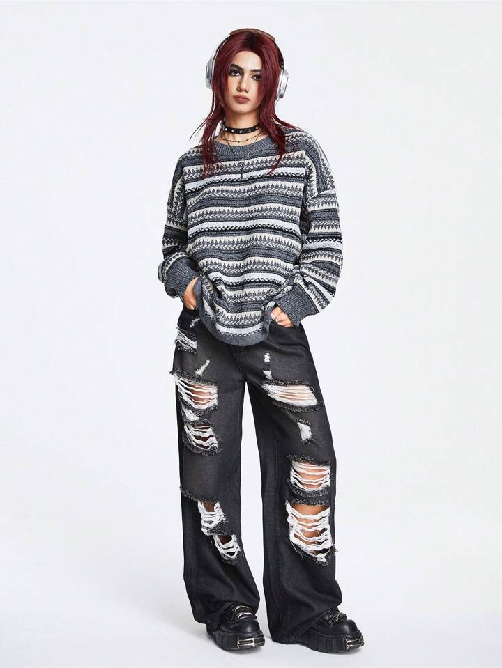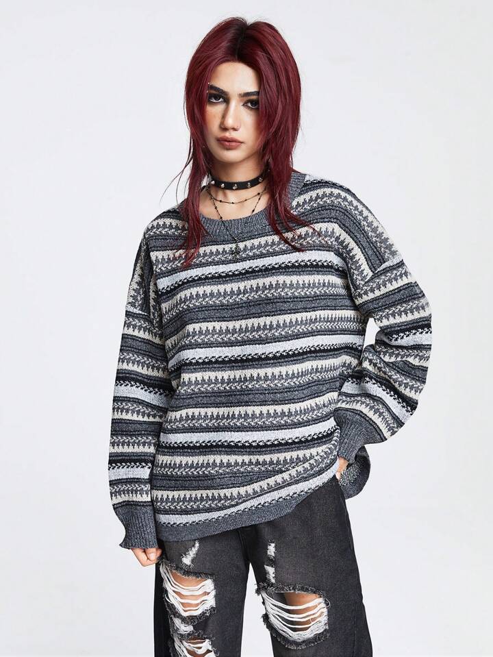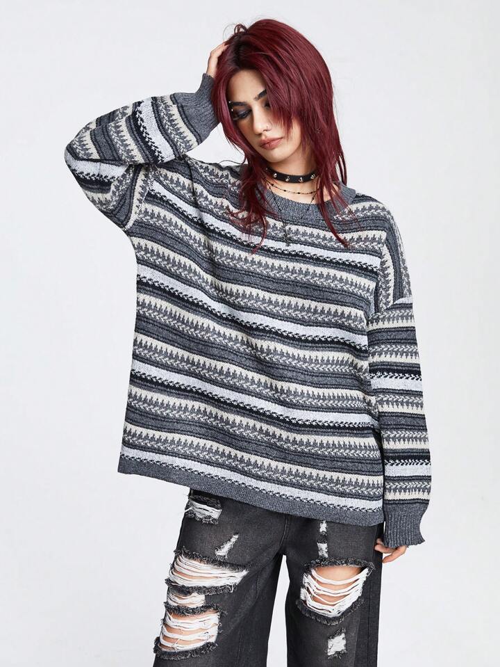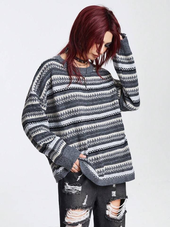 Academia كنزة صوف نمط هندسي منخفض الاكتاف