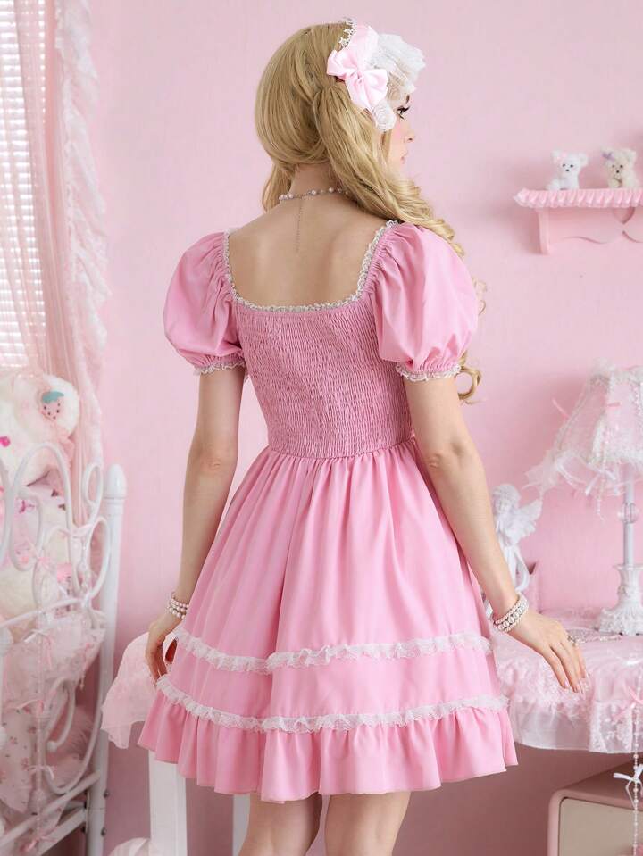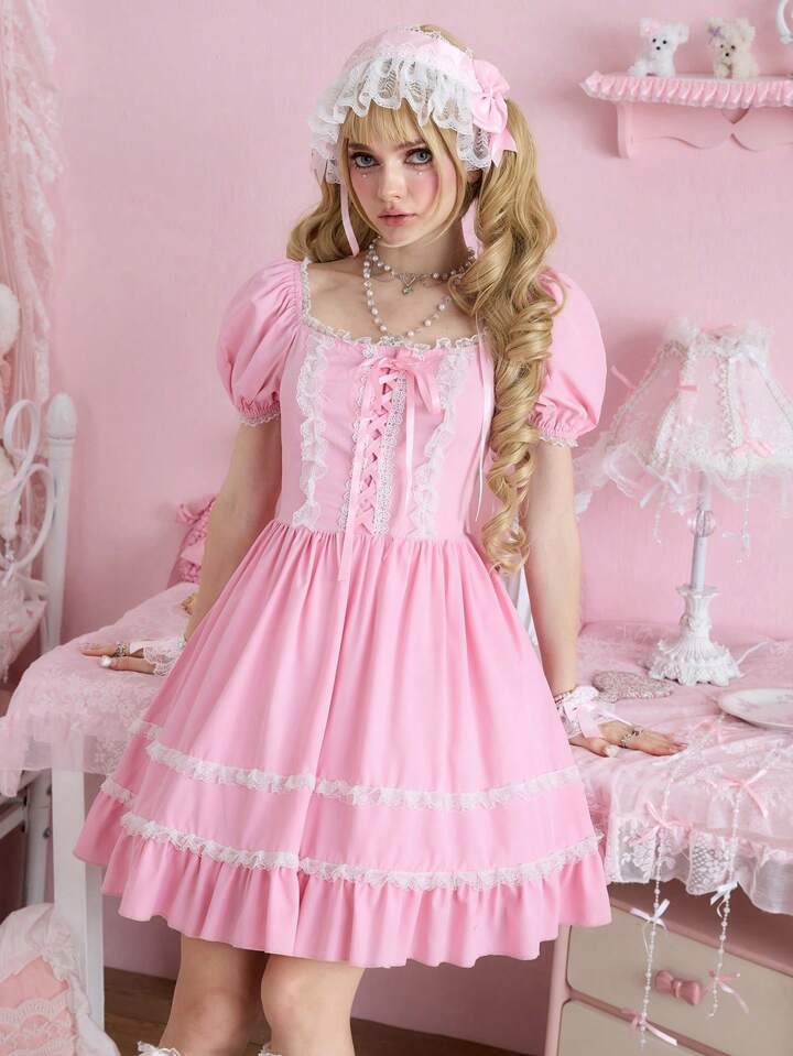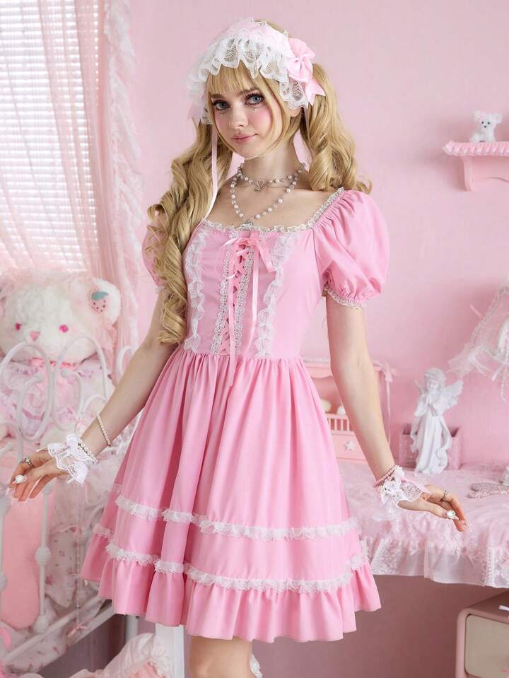 Academia فستان دمية على طراز "لولوتا" لفتيات الموضة اليابانية، فستان أنيق وحلو للسيدات مزين بقوس 3D وأكمام منفوخة