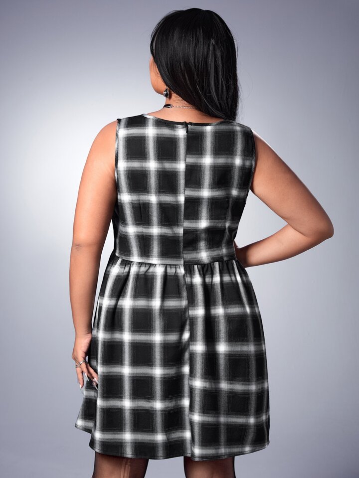 Academia فستان بطباعة الترتان بدون بلوزة مقاس كبير