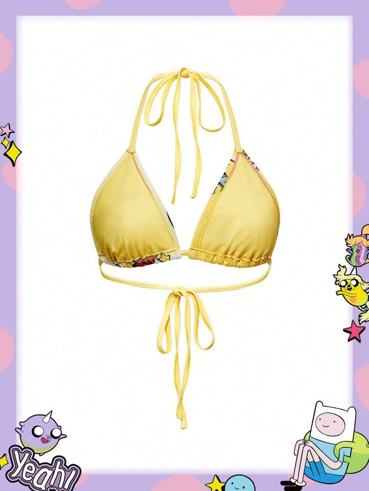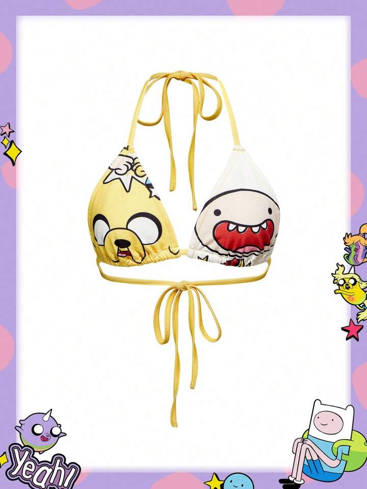 Adventure Time X ROMWE صيفي جذاب ملابس علوية كروب بدون ظهر مع أربطة وطبعات كارتونية