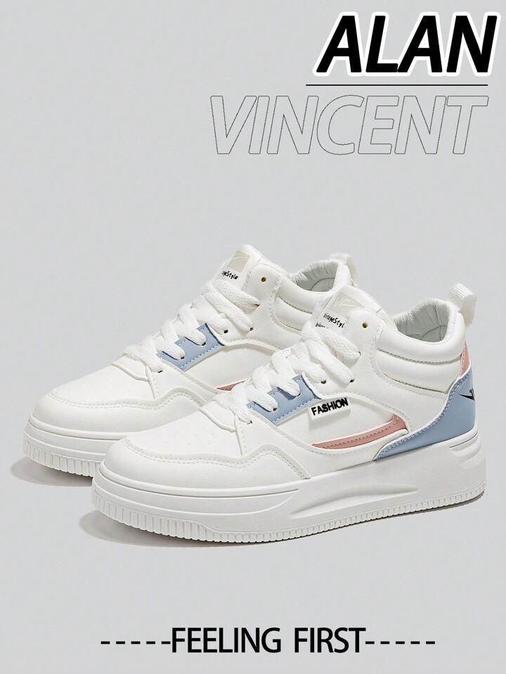 Alan Vincent أحذية نسائية عالية القمة مسطحة موديل 2025 ، أحذية رياضية دافئة ومريحة ، أحذية كاجوال بيضاء عصرية مع وظيفة مضادة للانزلاق ومقاومة للتآكل