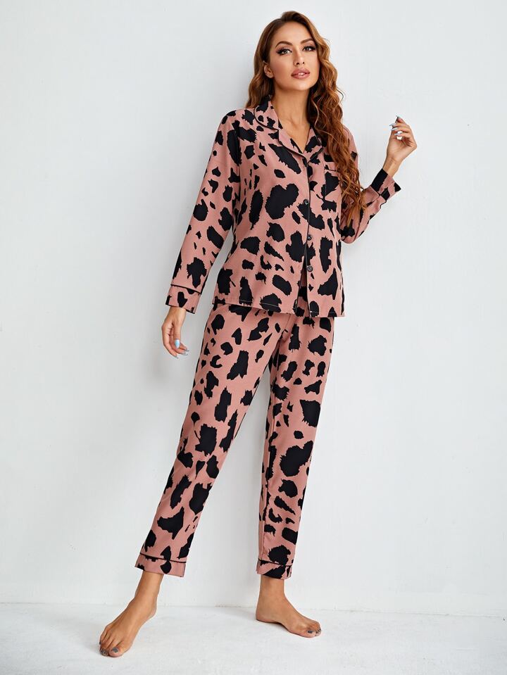 طقم البجامة المطبوع بالكامل مع جيب أمامي معزز