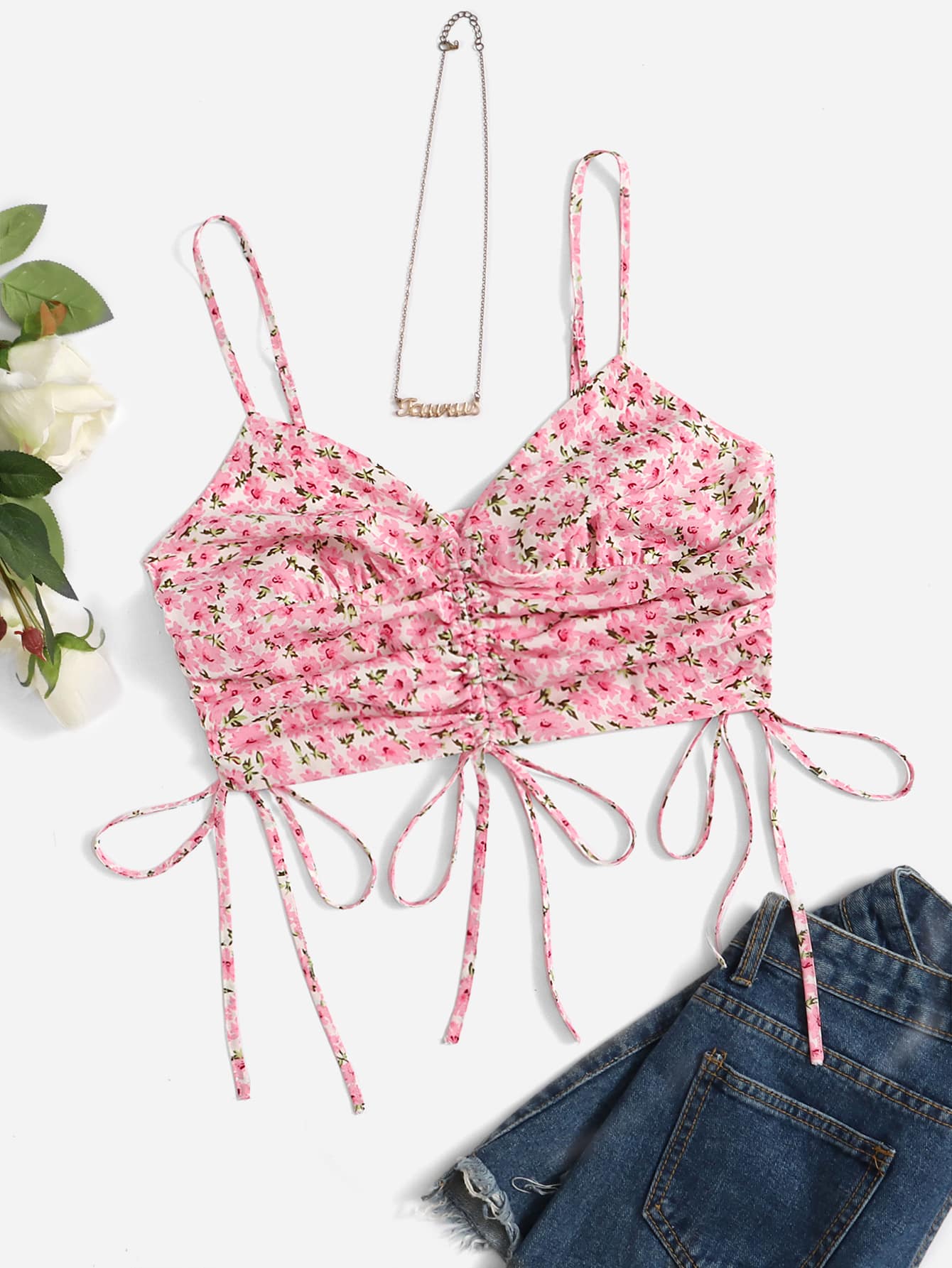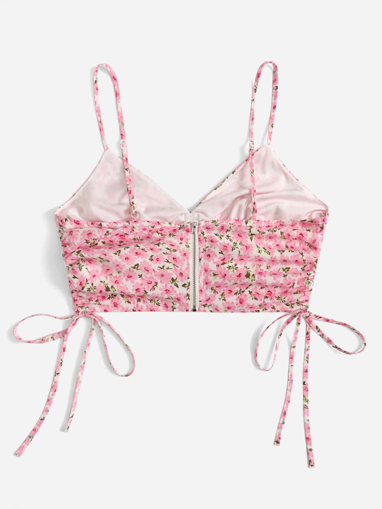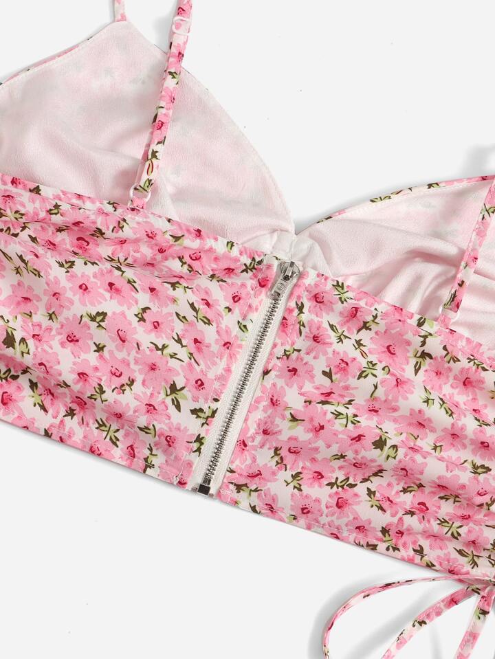 صدرية كامي قصير بطباعة زهر شامل ثنية رباط