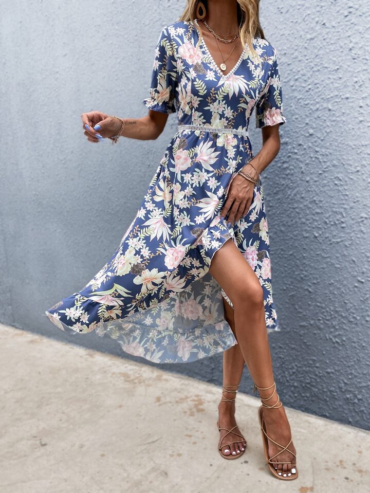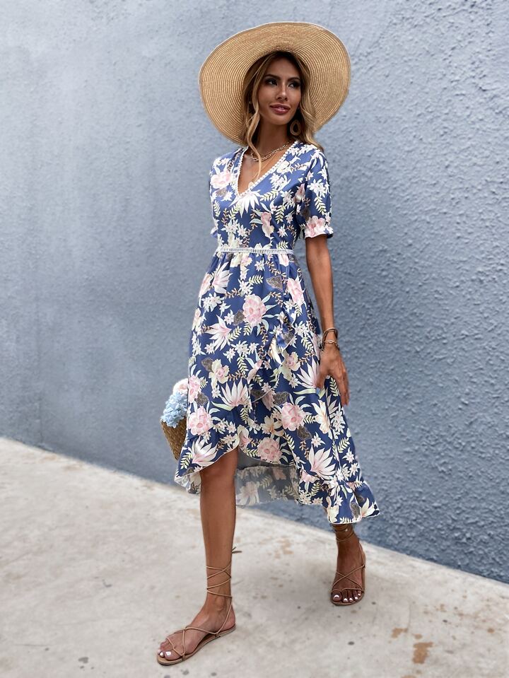 فستان بحافة مكشكش مطوي بطباعة زهر شامل