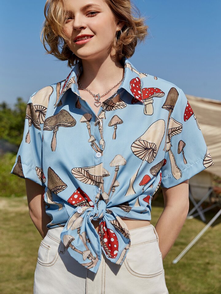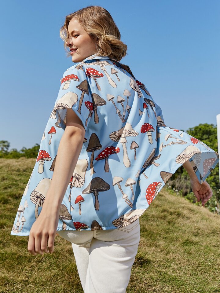 بلوزة شامل بطباعة فطر أزرار أمامية