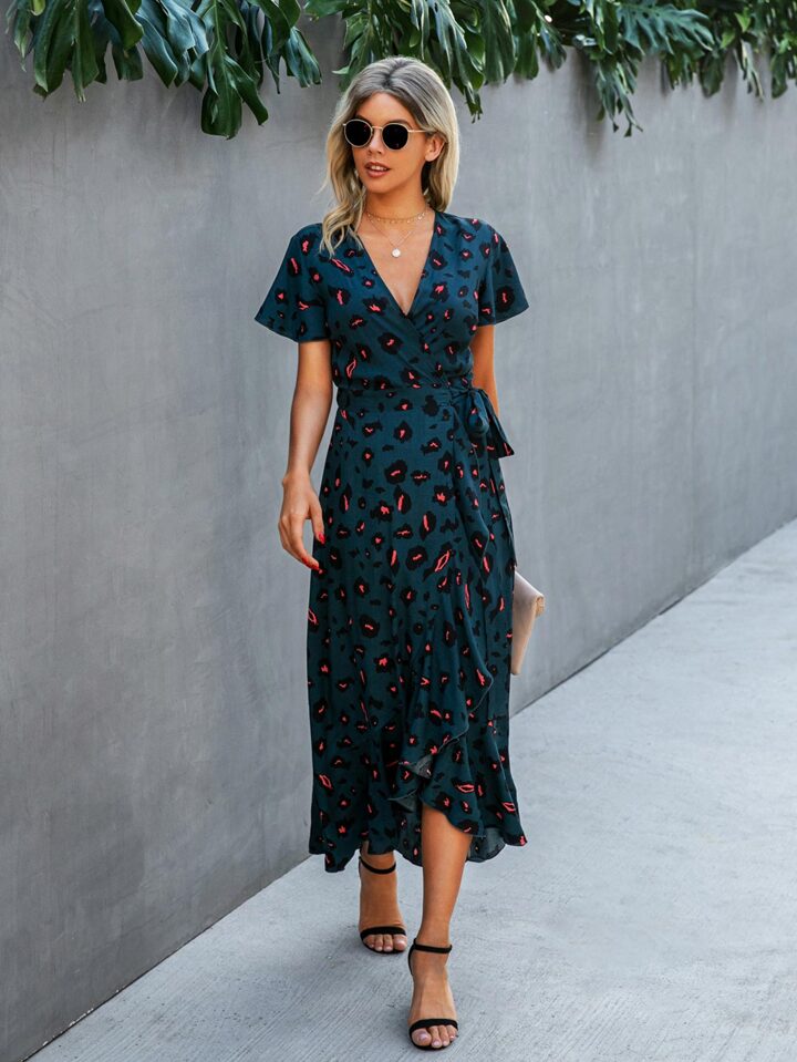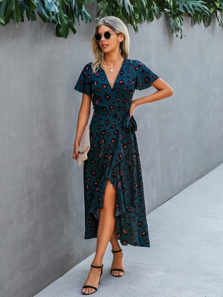 فستان بخط A منخفض وعالي بطباعة شامل