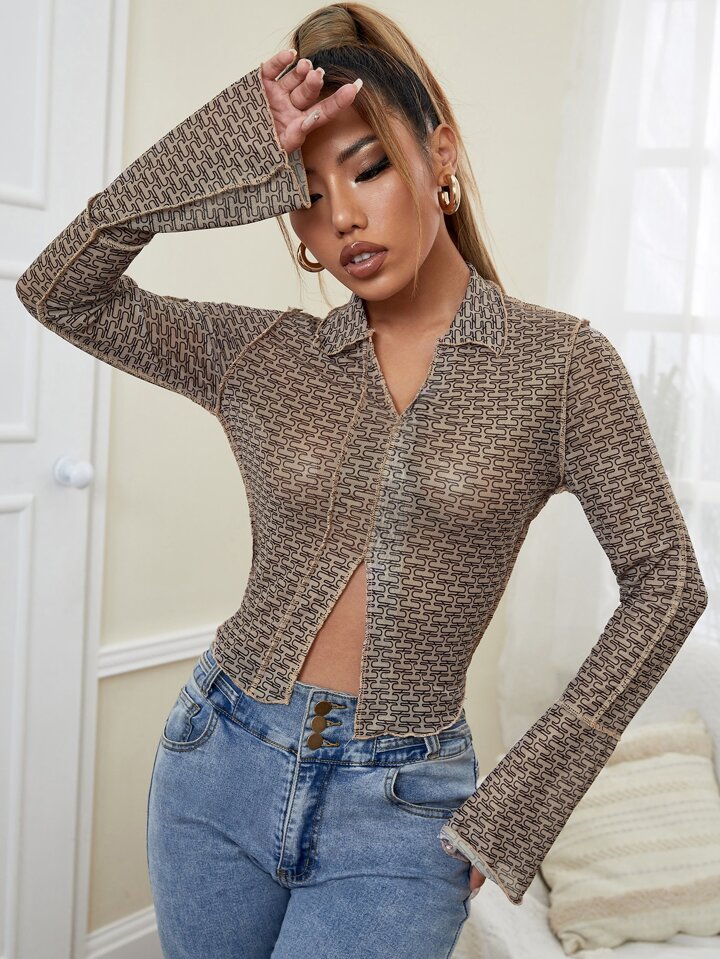 ملابس علوية طباعة شامل شبكة شريط منسوج بحافة شق