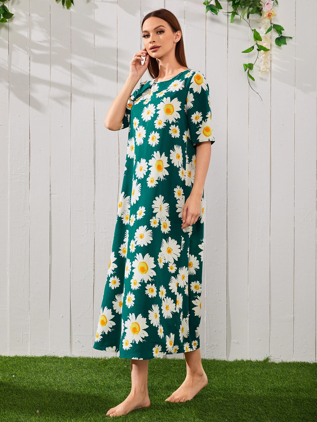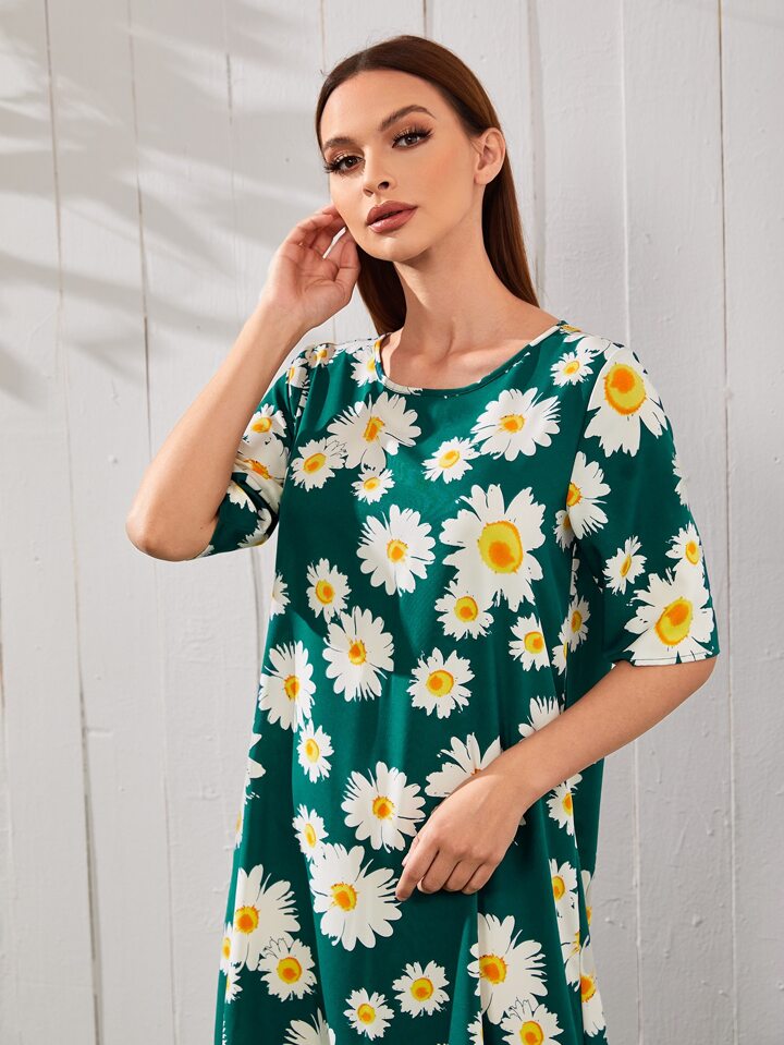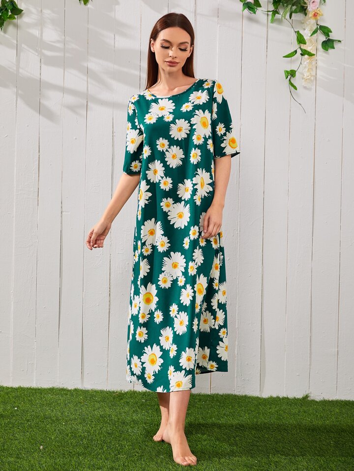 فستان نوم بطباعة زهرة عباد الشمس متكررة