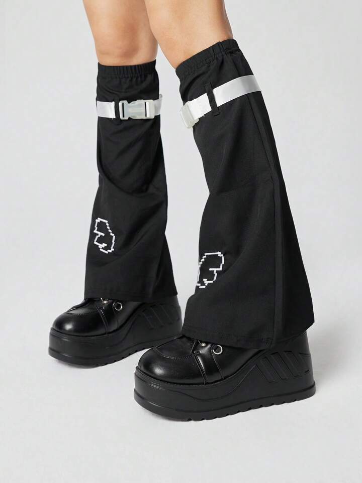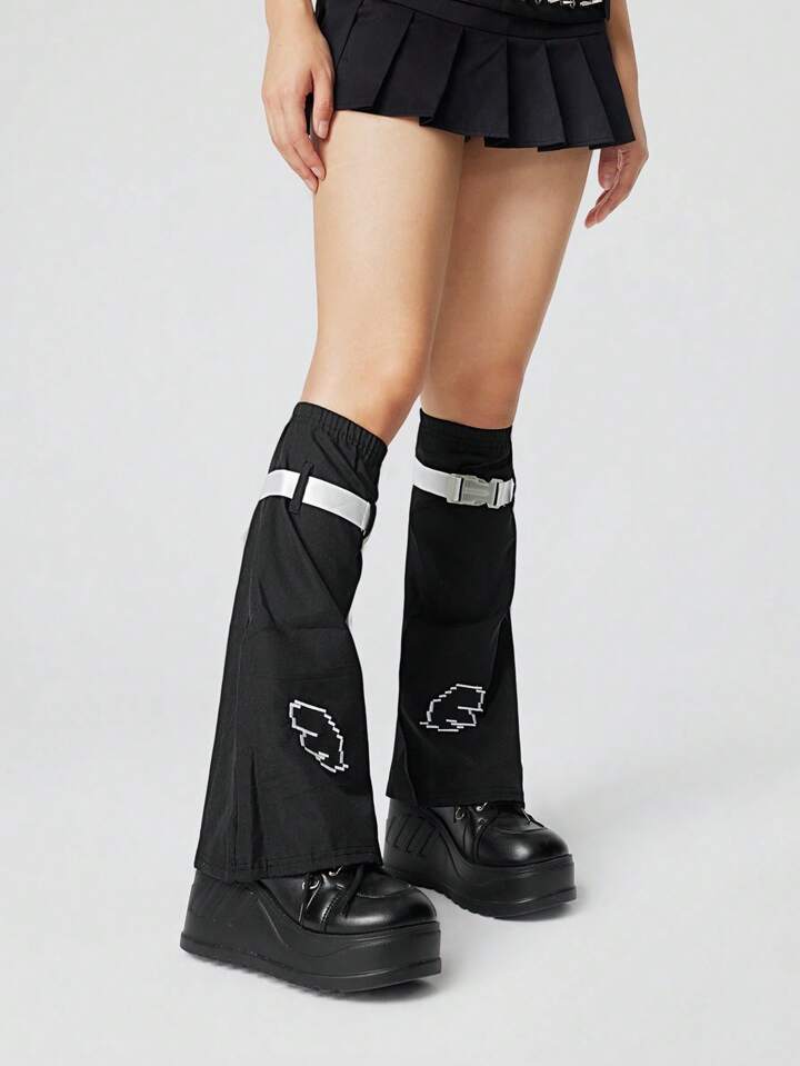 Anime زوج واحد من الساق ال- Flared الأسود والأبيض، أكمام دافئة مستقبلية للركبتين من نمط Y2K، ساق دافئة متعددة الاستخدامات وكاجوال