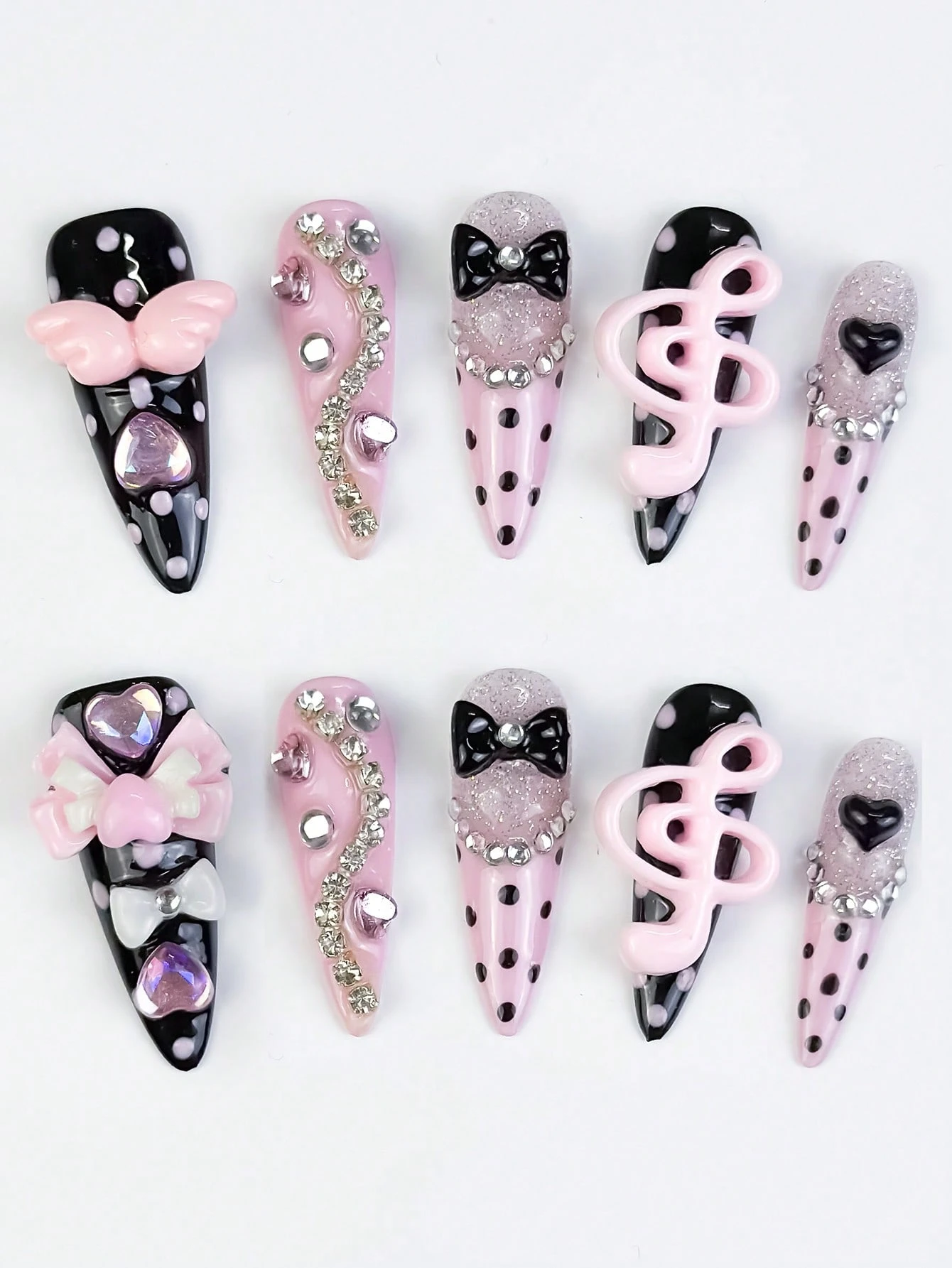 Anime 10 قطعة ملصقات فن الأظافر على شكل قلب، نجمة، فيونكة، جناح مع شريط لطيف من طراز Y2K