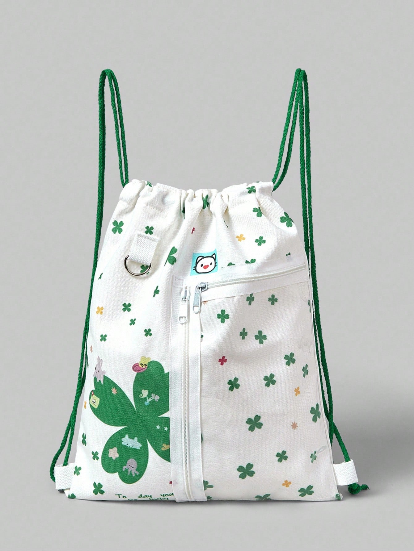 Anime 1 قطعة حقيبة ظهر بسحاب مطبوع عليها أرنب أبيض وشكل البرسيم، حقيبة ظهر بتصميم جمالي رجعي من فترة التسعينات، حقيبة سحاب بطباعة حرفية، حقيبة ظهر لعرض الدمى الصغيرة، مناسبة للتنقل اليومي والتسوق وغيرها.