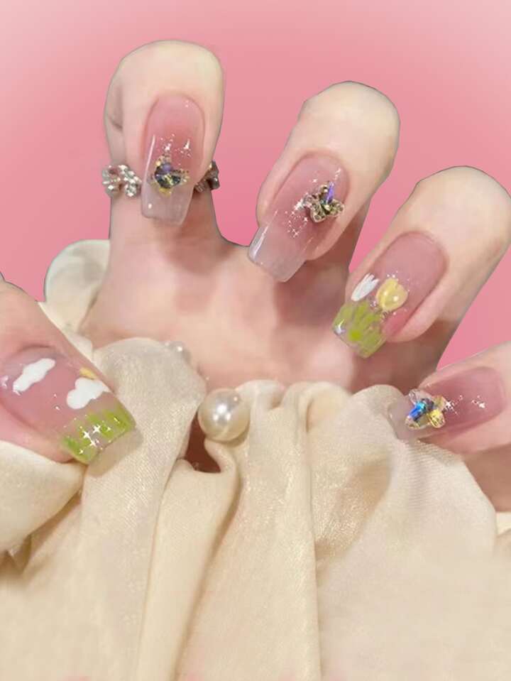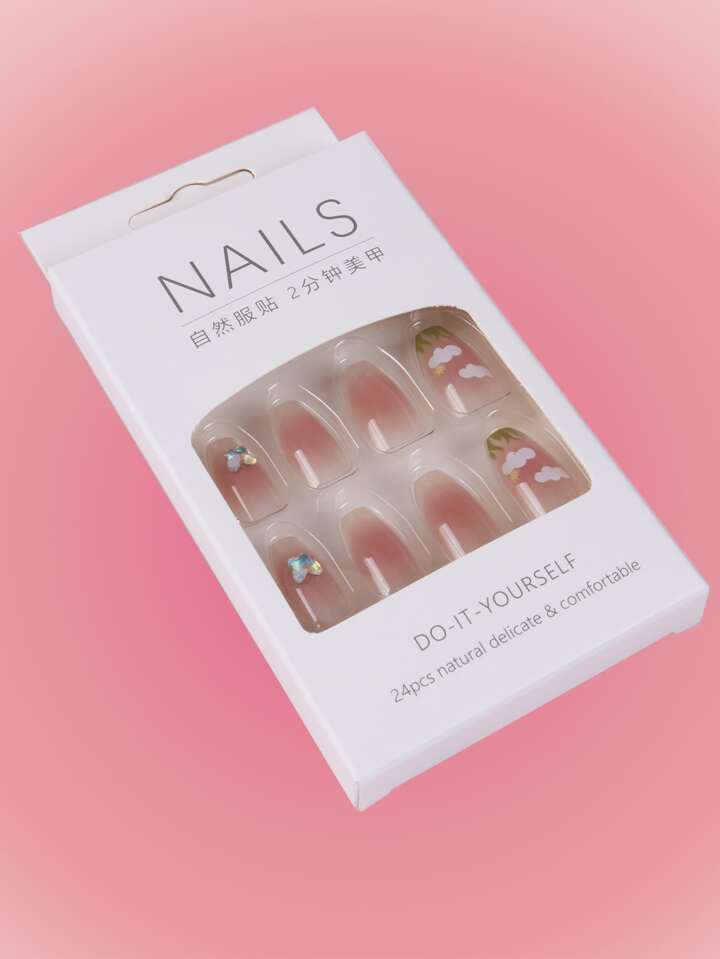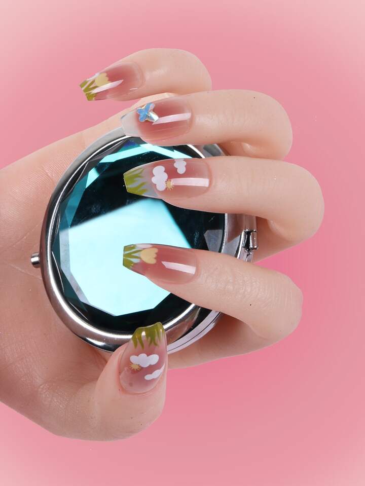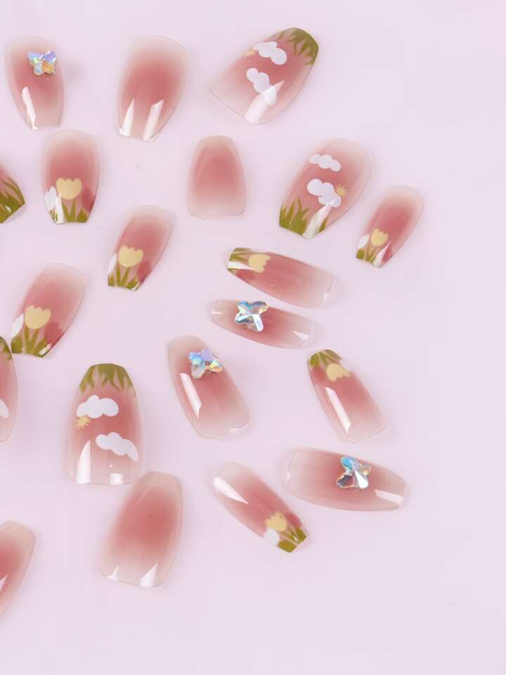 Anime 24 قطعة زخرفة فراشة أظافر اصطناعية و ورقة واحدة شريط