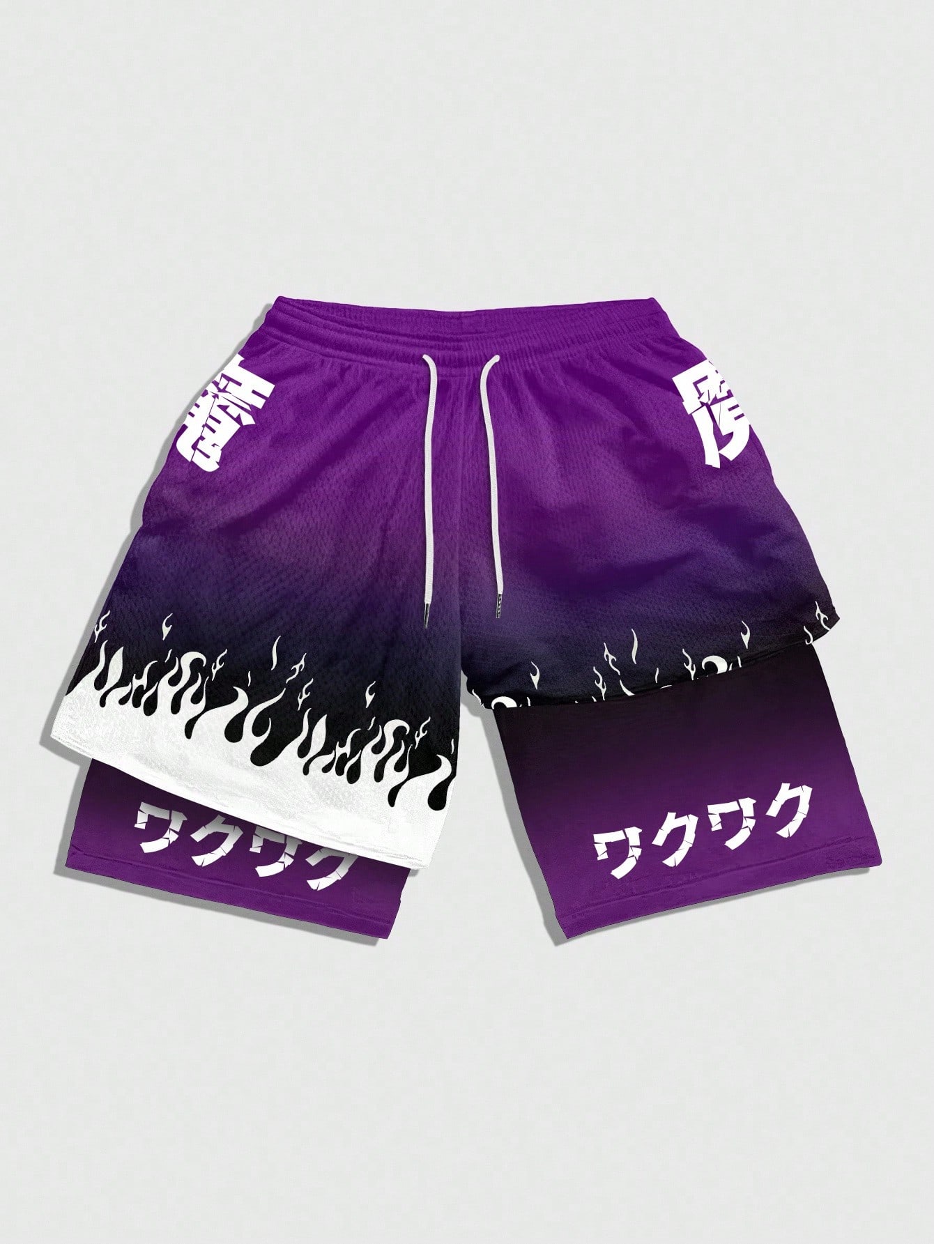 Anime شورت رجالي كاجوال فضفاض بخصر رباط قابل للتعديل