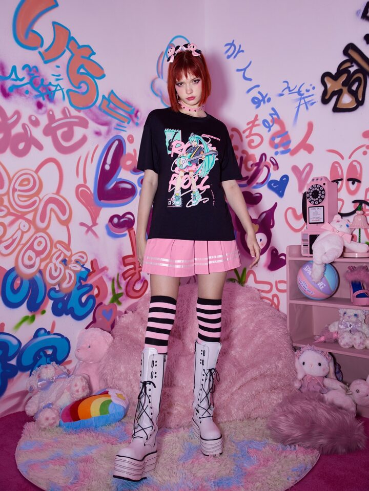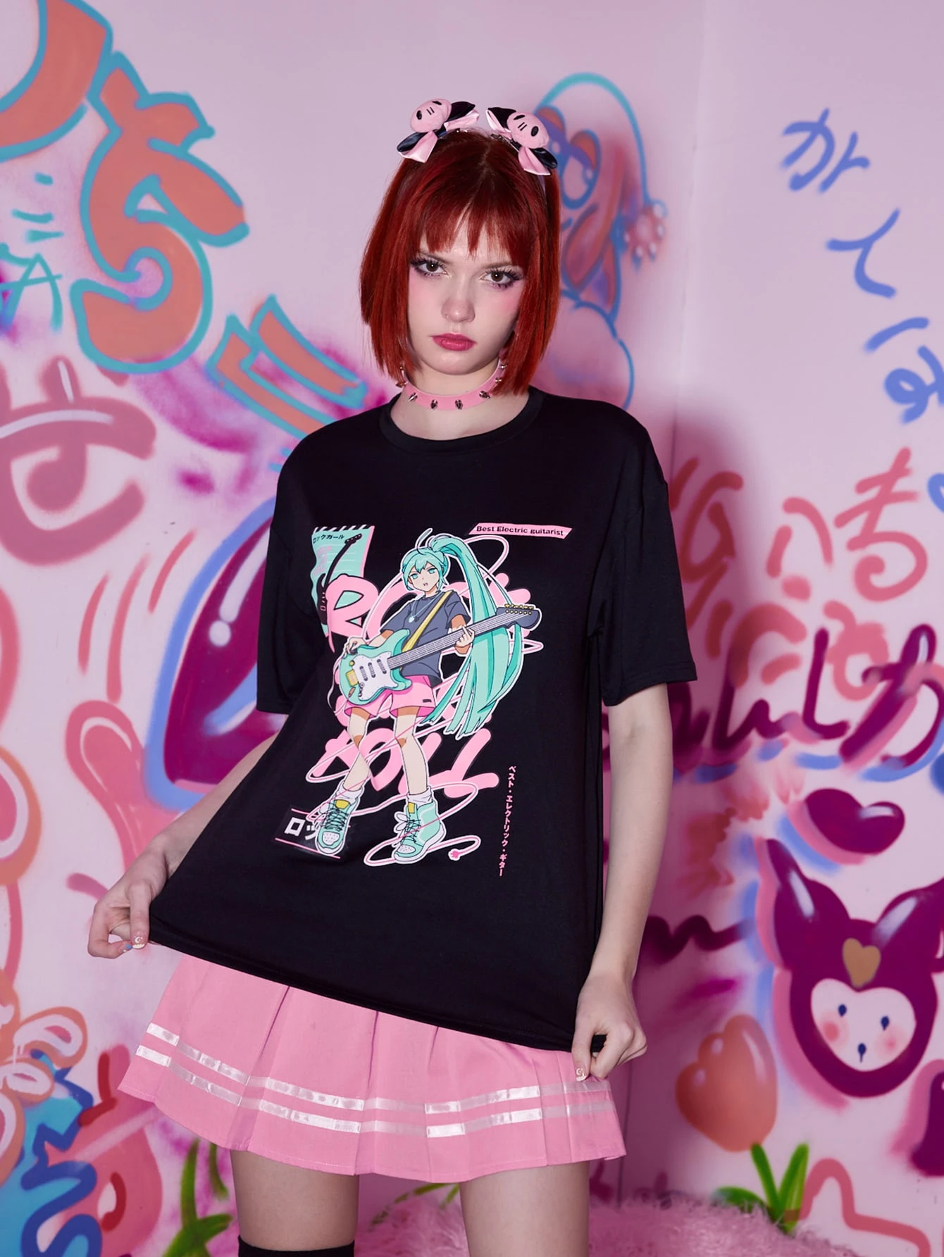 Anime تي شيرت منخفض الاكتاف طباعة شكل