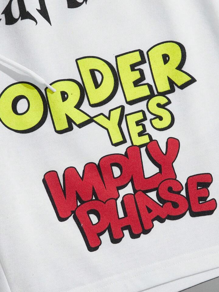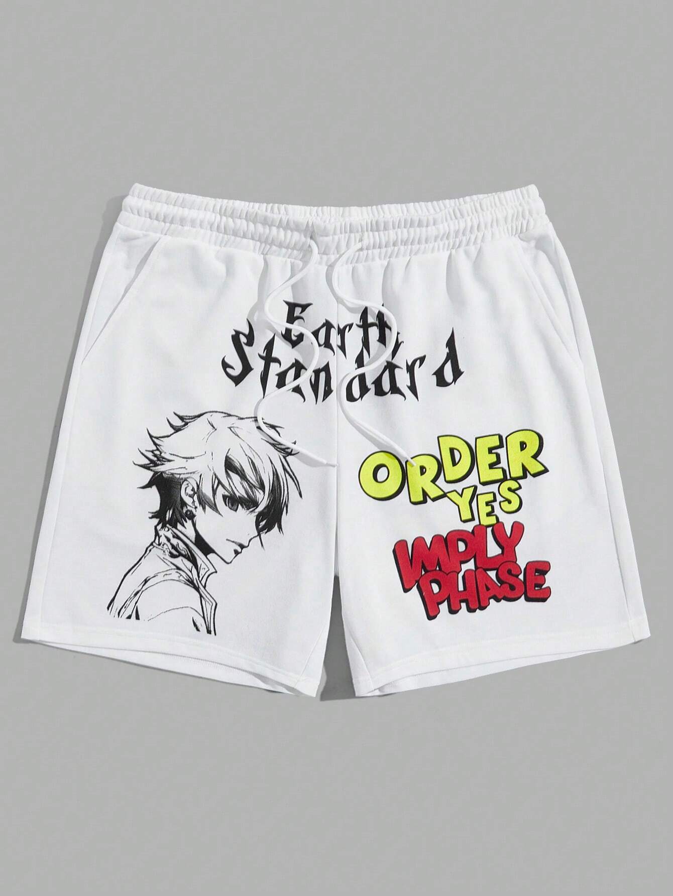 Anime بنطلون قصير بجرافيك شعار وشكل رباط خصر للشباب