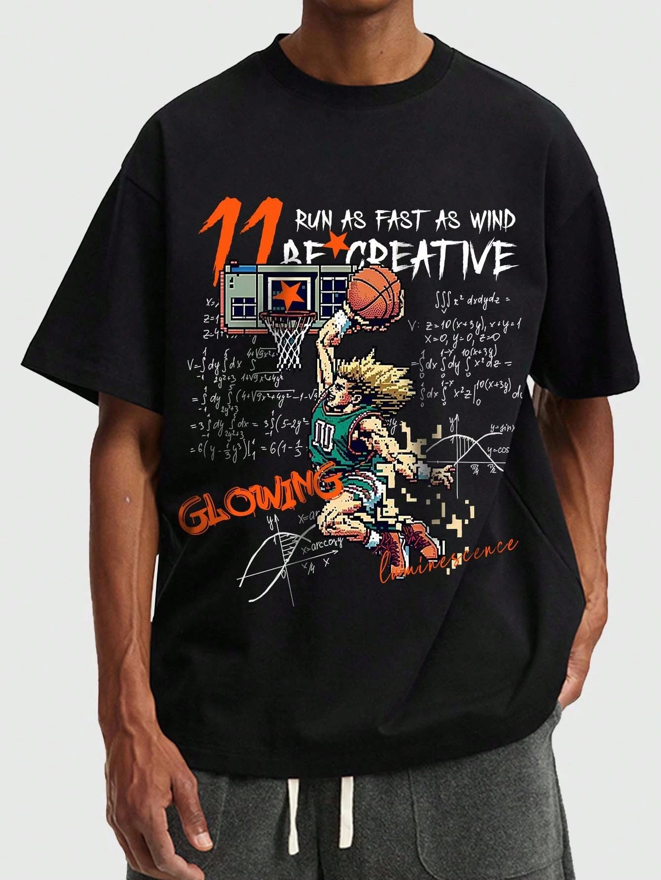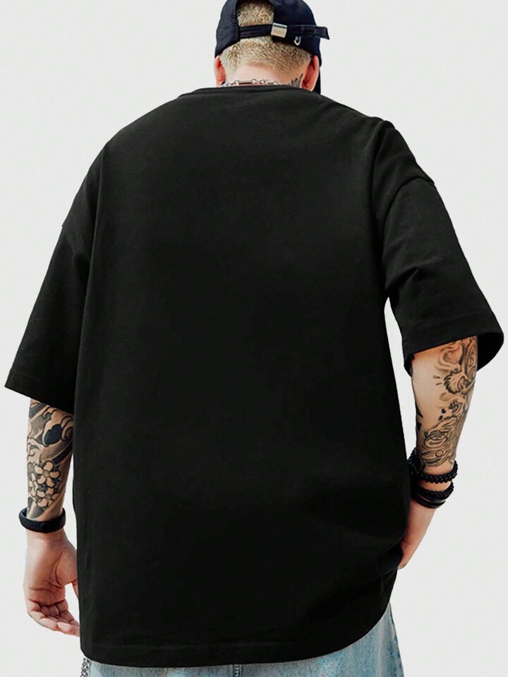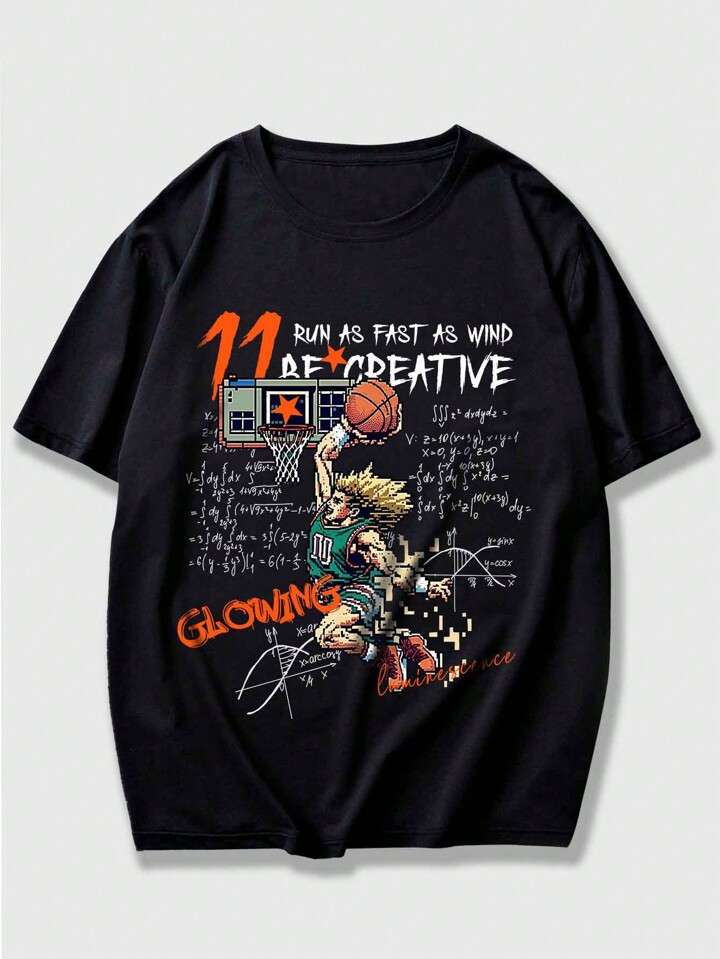 Anime تي شيرت رجالي بأكمام قصيرة وطباعة شعار