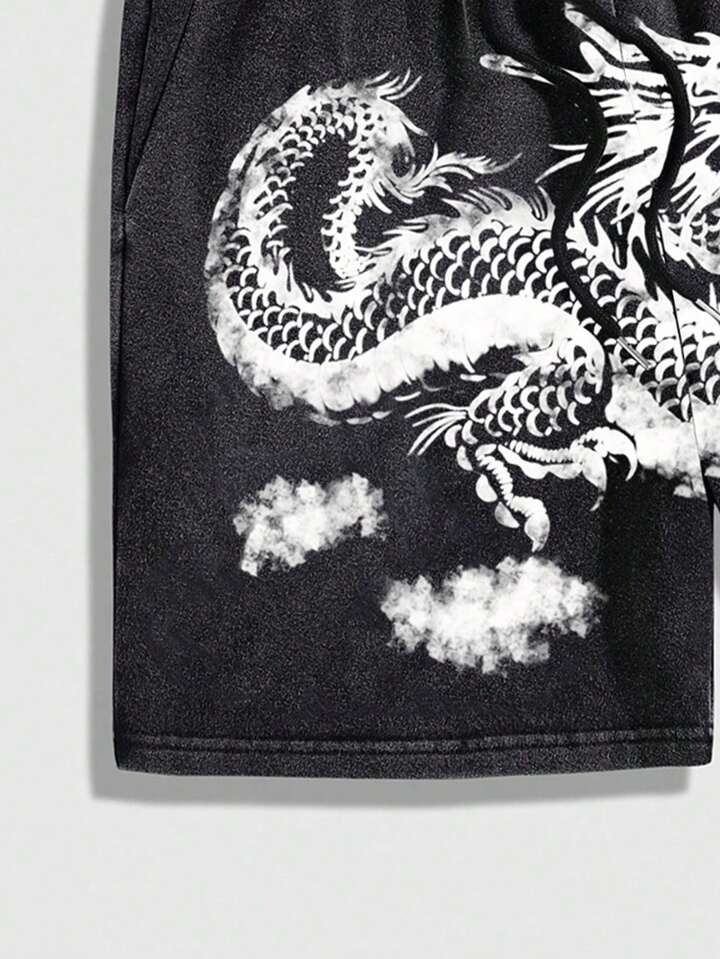 Anime شورتات صيفية عادية للرجال ذات رباط للخصر بطبعة تنين