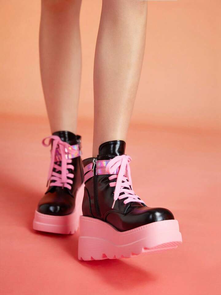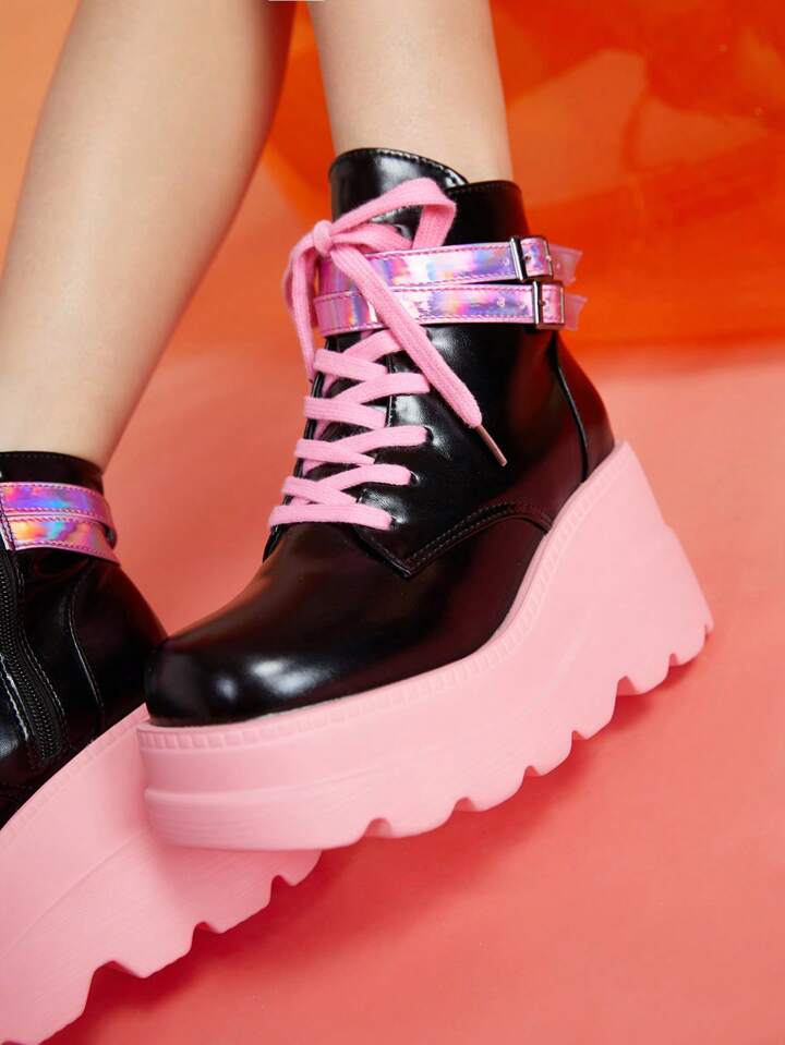 Anime أحذية منتصف الساق رباط باصابع قدم دائري كعب منحدر موضة خارجي نساء