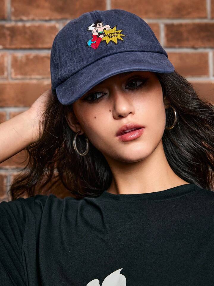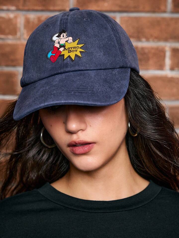 Astro Boy X ROMWE قبعة بيسبول مغسولة بلون أزرق مع رسوم كرتونية