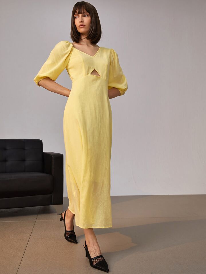 فستان غير متساوي او غير متماثل مثقوب سستة الصاف أنيقة