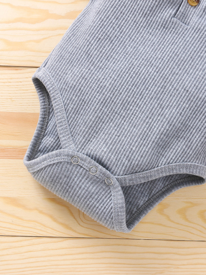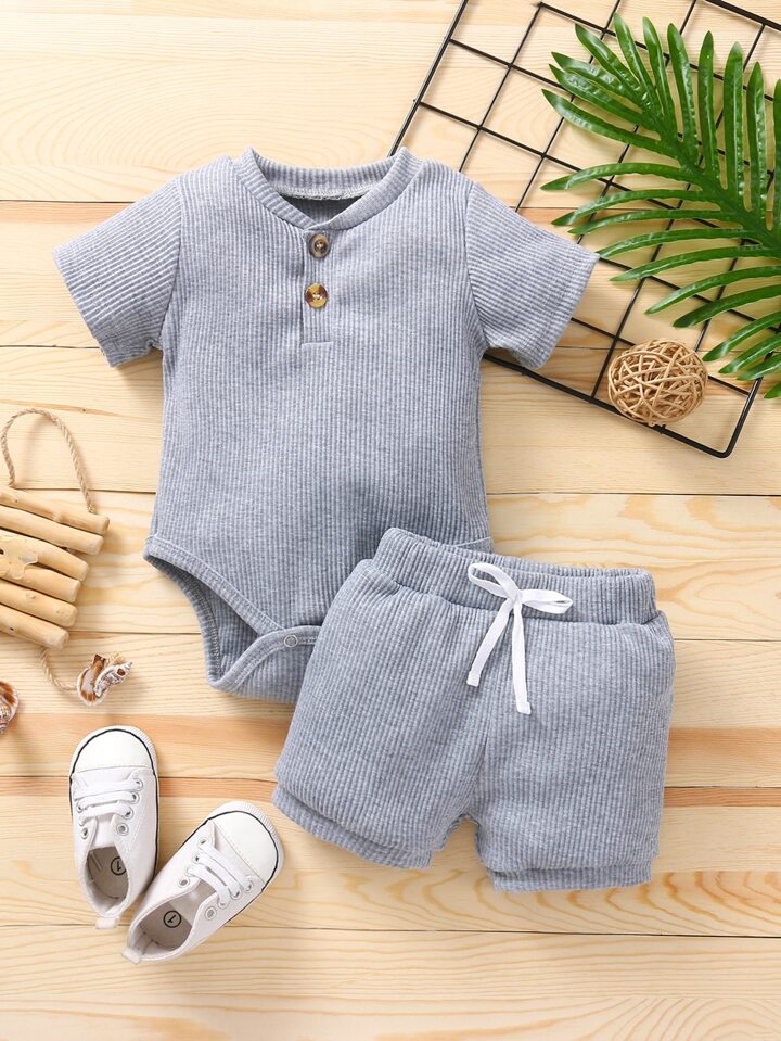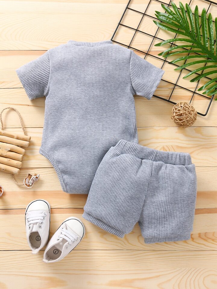 بدسويت بياقة بزر مع شورت فيونكة امامي للاولاد الرضع