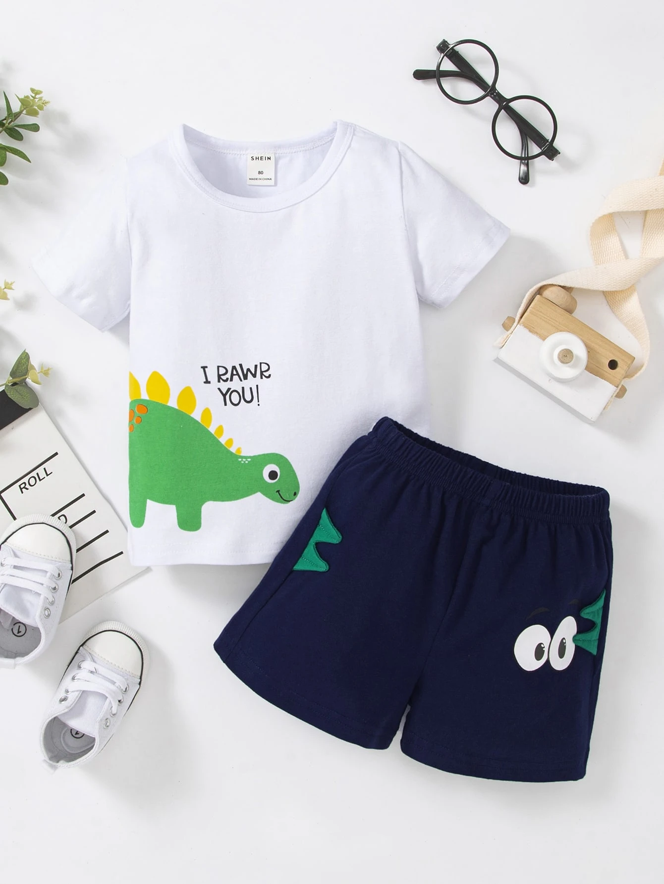شورت مرقع مع تي شيرت بجرافيك رسوم كارتون للاولاد الرضع