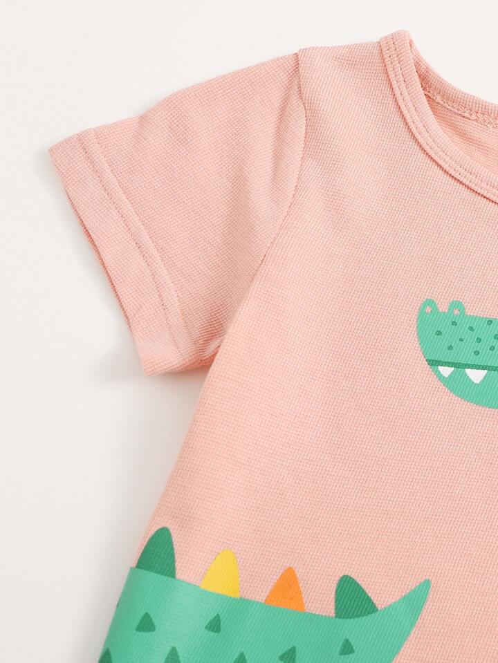 تي شيرت بجرافيك رسوم كارتون مع سروال قصير دينيم للاولاد الرضع