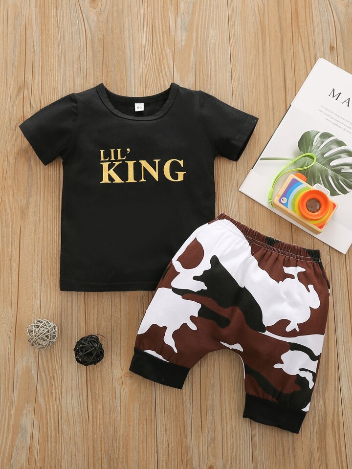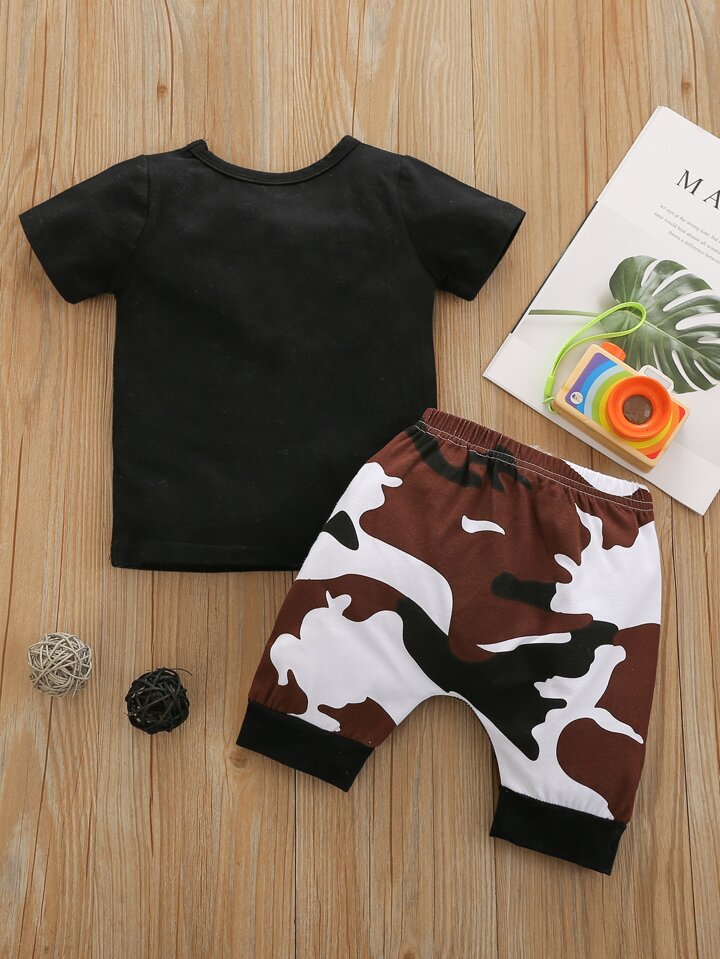 تي شيرت بجرافيك عبارة مع شورت مموة للاولاد الاطفال