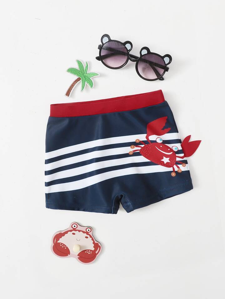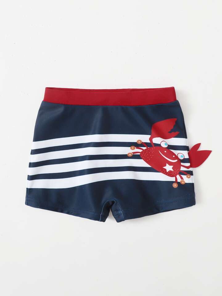 سروال قصير سباحة بطباعة سلطعون ومخطط للاولاد الاطفال