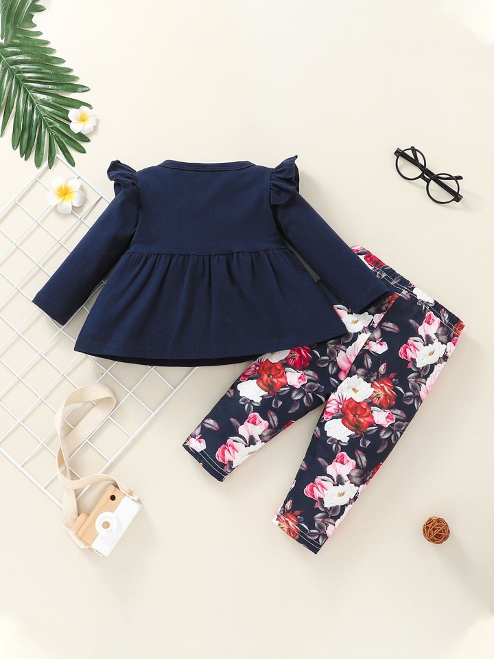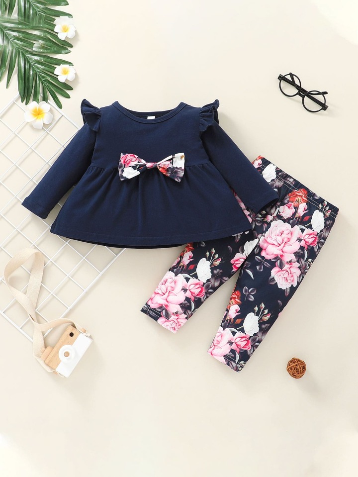 لباس علوي بيبي دول عقدة الفراشة أمامية مع طماق للبنات الاطفال