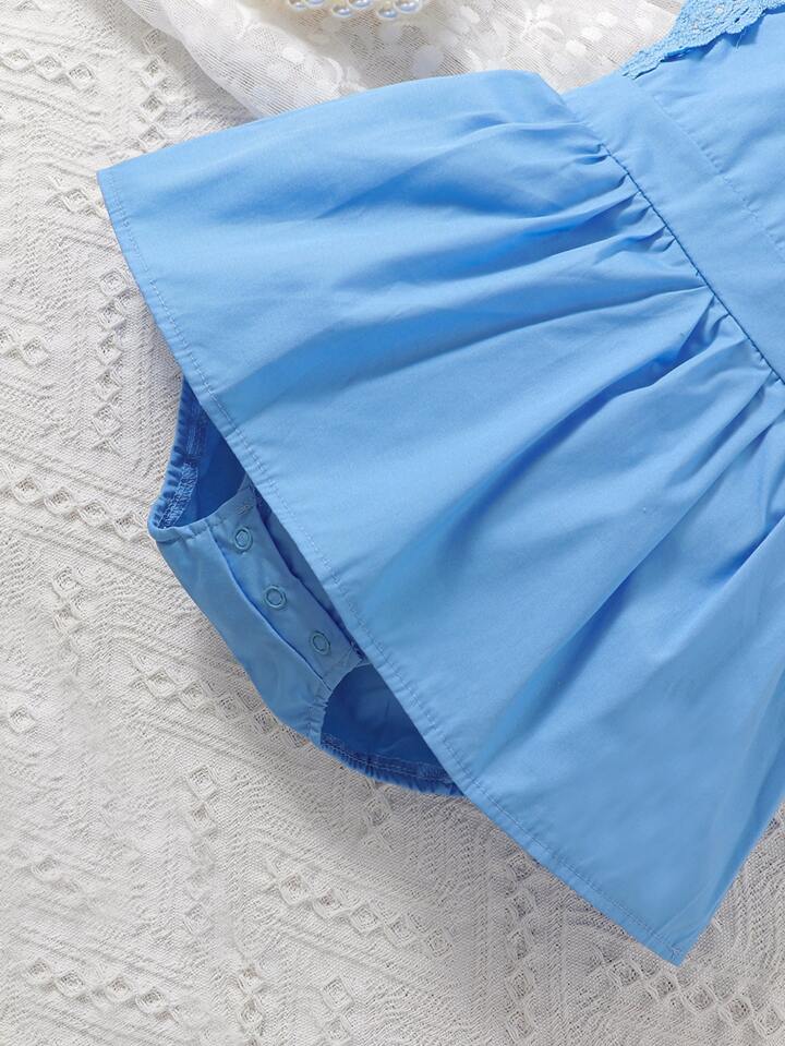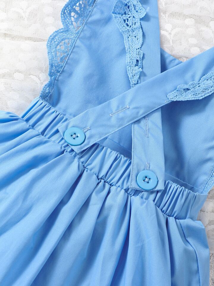 فستان ضيق مدمج دانتيل متباين اللون للبنات الاطفال