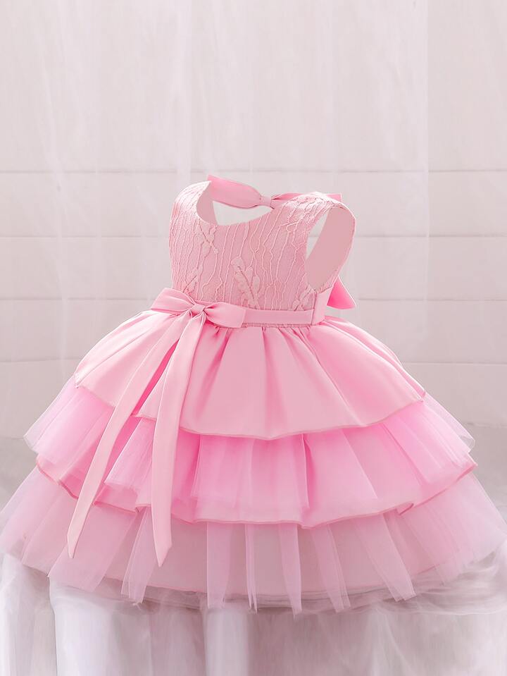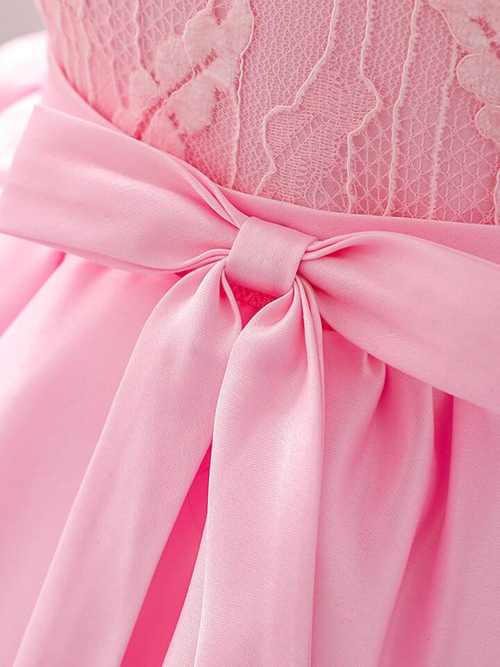 فستان حفلة بصدر بربطة خلفي وبقوس امامي شبكي متباين للبنات الاطفال