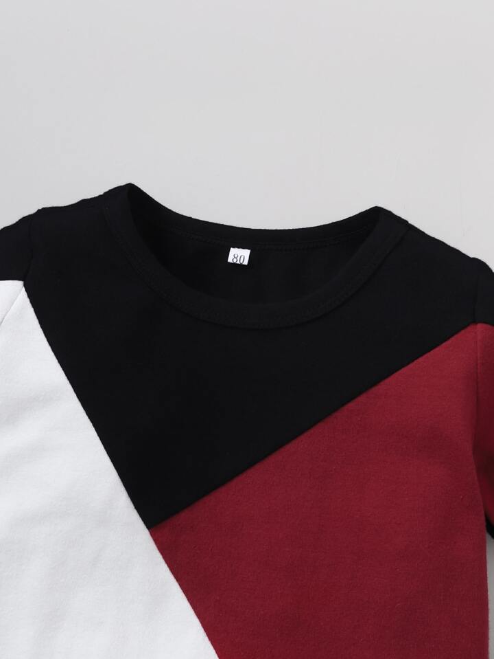 بنطلون رياضي مع تي شيرت بلوحة متباين للبنات الأطفال