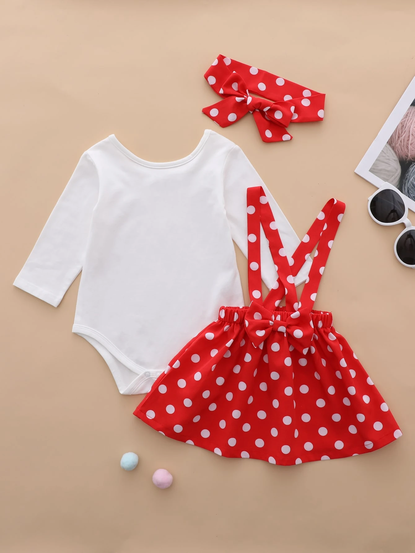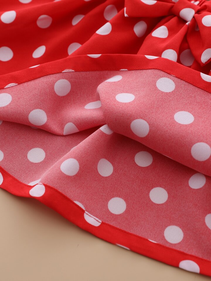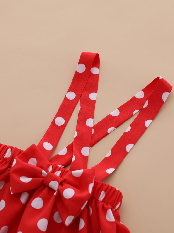تنورة بحمالات بنقاط بولكا مع بدسويت متقاطع خلفي مع عصابة رأس للبنات الرضع