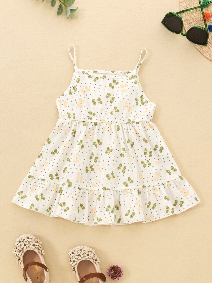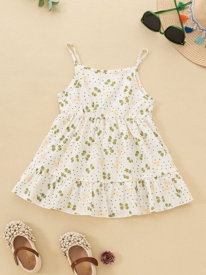 فستان كامي بنقاط البولكا وبطباعة زهر للبنات الأطفال