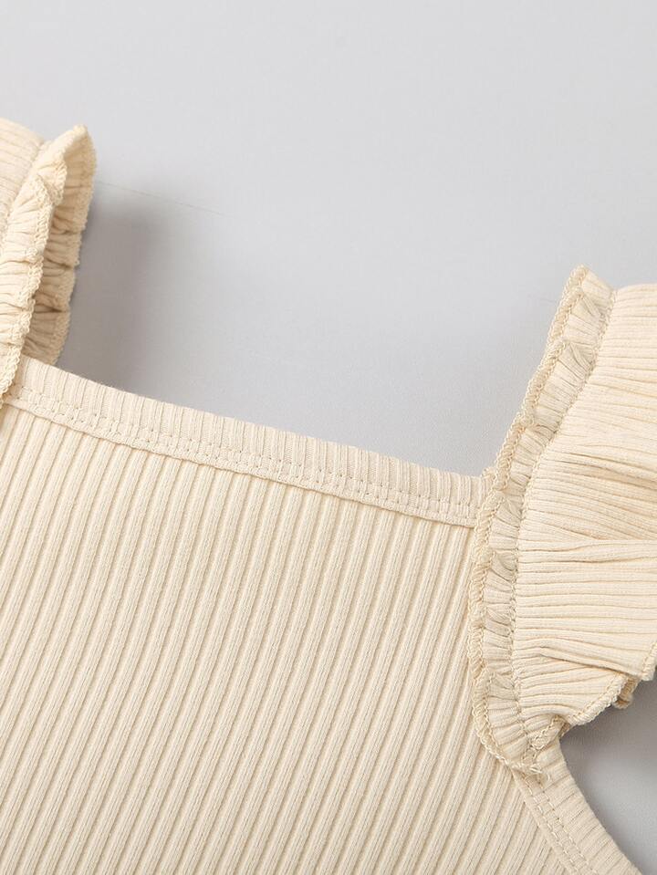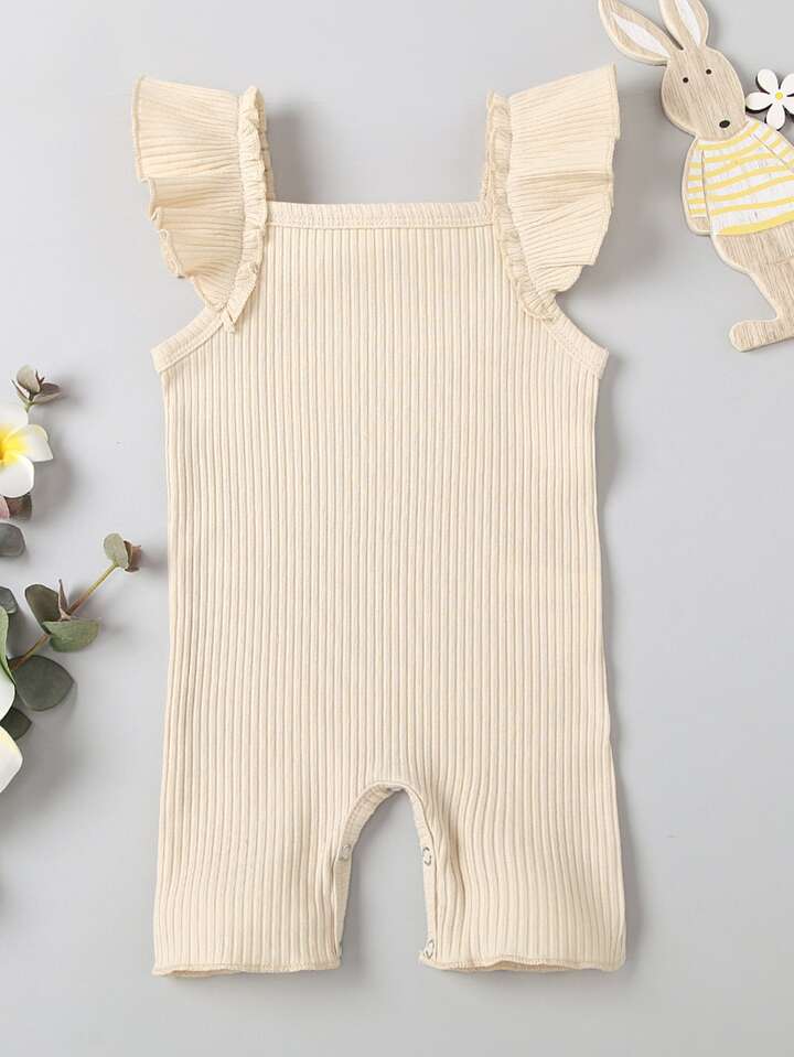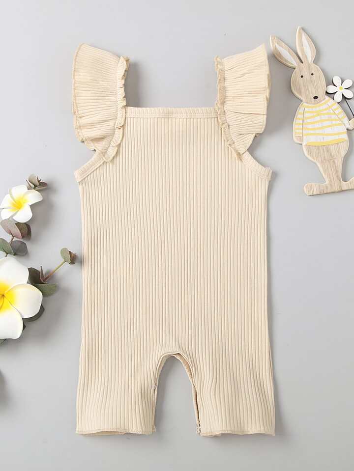 رومبير بلون موحد مقلم مكشكش مضلع للبنات الرضع
