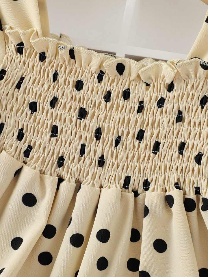 فستان بنقاط بولكا بصدر مدرز للبنات الرضع