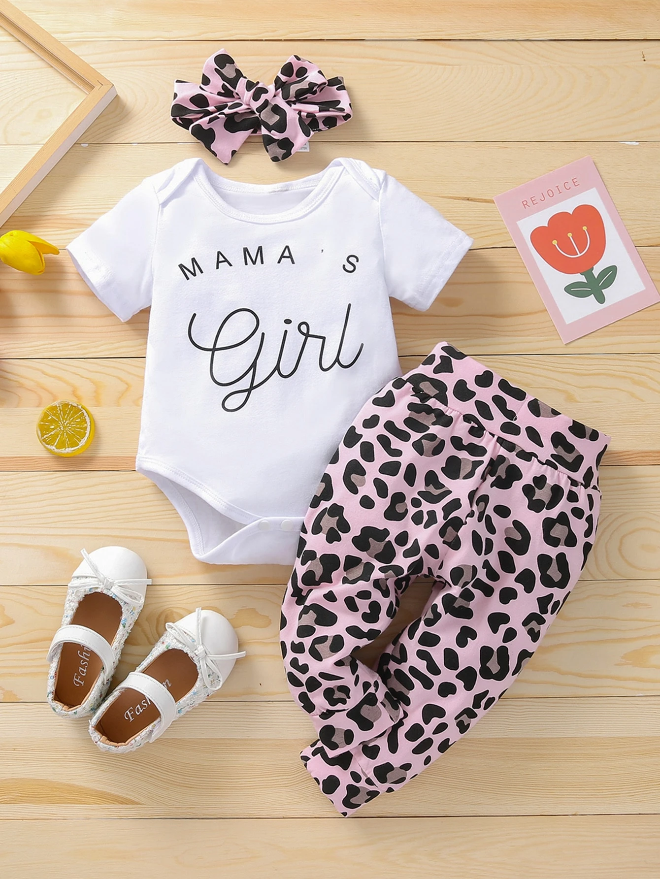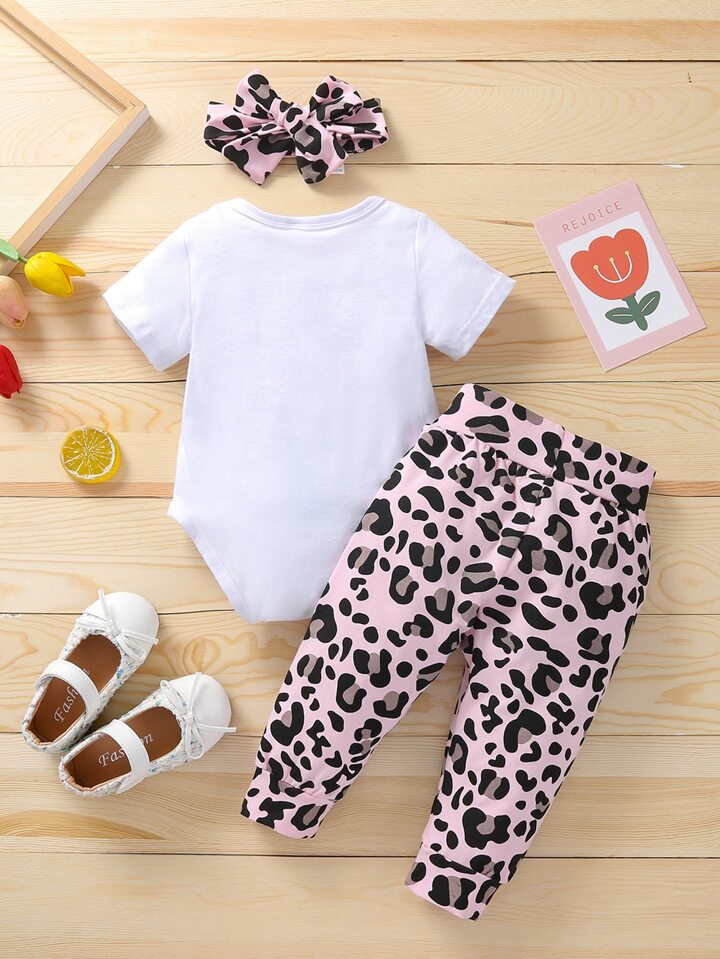 بنطلون مع بدسويت بجرافيك شعار مع عصابة راس للبنات الرضع