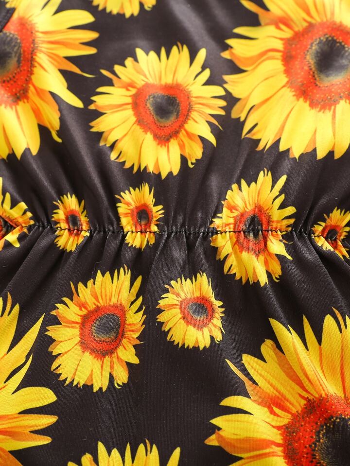 بدسويت بإدخال دانتيل بطباعة زهرة دوار الشمس مع عصابة راس للبنات الرضع