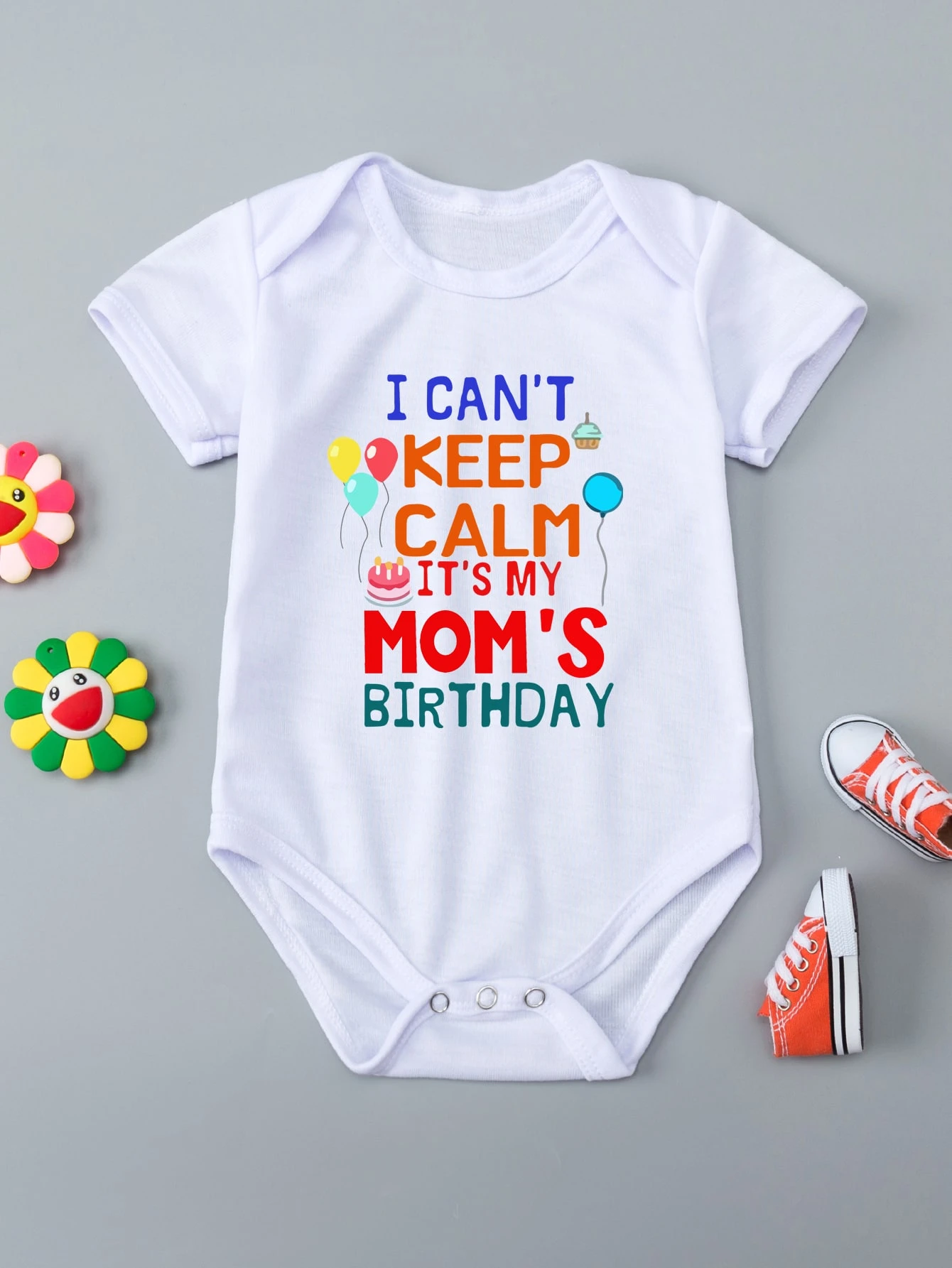بدلة جسم غرافيك بالون وعبارة للأطفال الرضع متوافقة مع الجنسين
