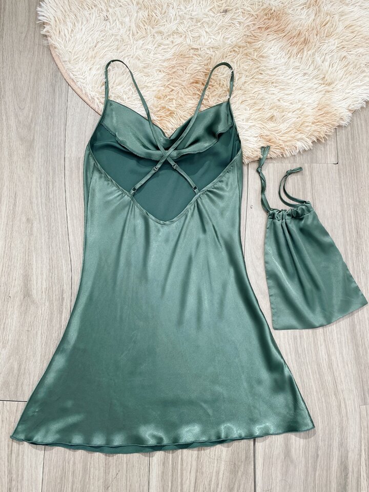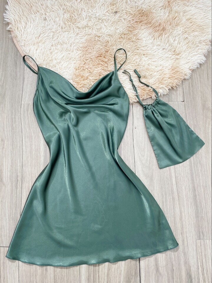 فستان ليلي مكشوف الظهر ساتان مع حقيبة تخزين