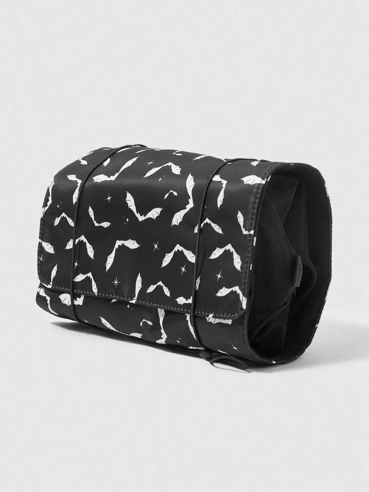 Goth حقيبة مكياج سفر وحقيبة حقيبة حمل جمالية ذات طباعة أسلوب جوتيك على شكل خفافيش