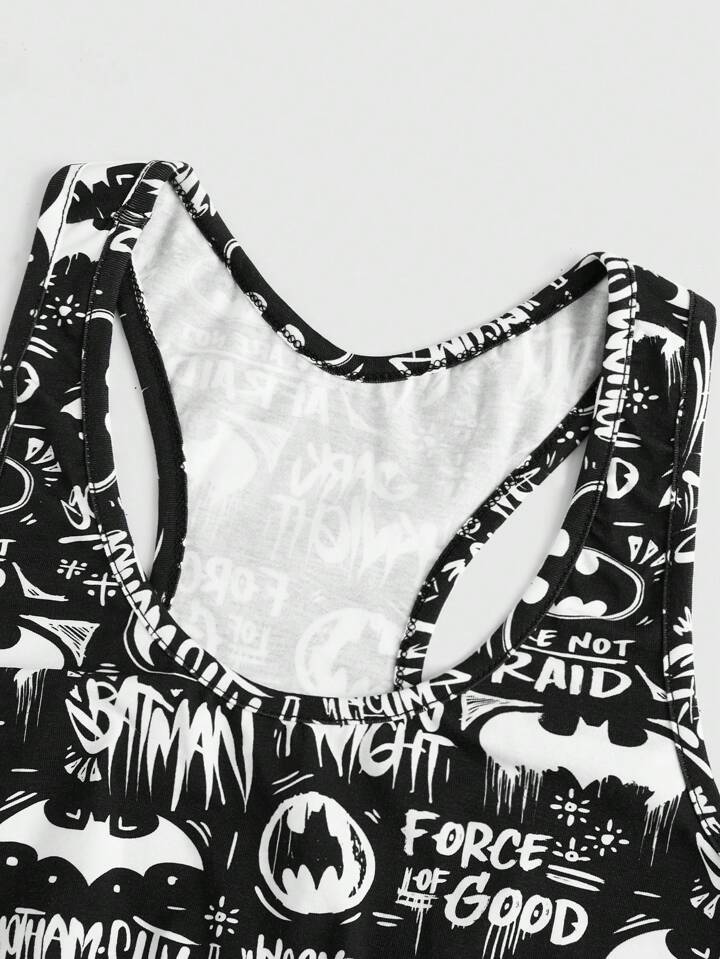 Batman X ROMWE طقم بيجاما بطبعات كرتونية، المدرسة