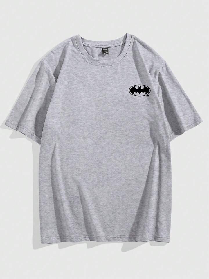 Batman X ROMWE تي شيرت تي شيرت كاجوال للرجال بياقة مستديرة وأكمام قصيرة، بطبعة رسوم كرتونية، صيفي