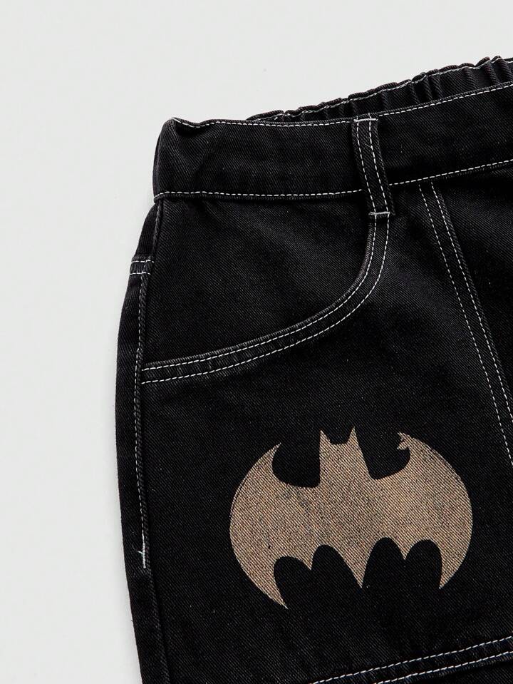Batman X ROMWE بنطلون جينز فضفاض بساق واسعة مع شكل رسوم كرتونية ، مناسب للمدرسة